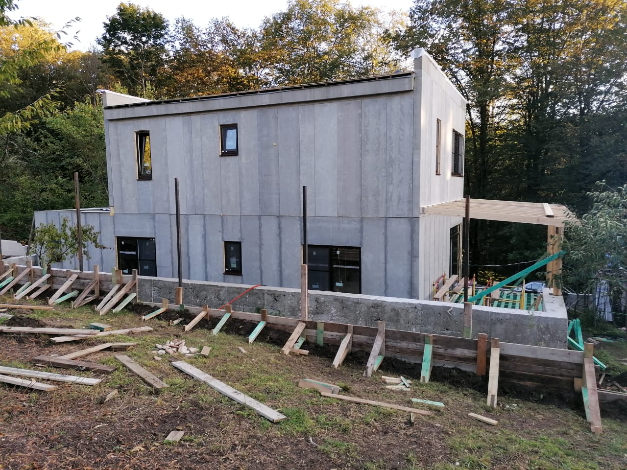 Ростверк изготовлен из калиброванного клееного бруса и защищен снаружи цементно-стружечной плитой