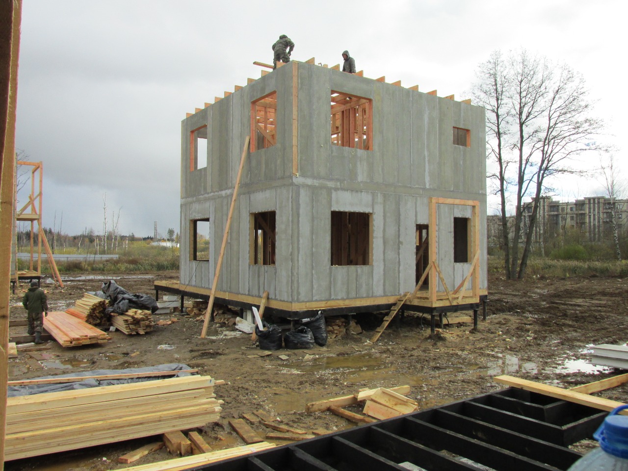 Ростверк изготовлен из калиброванного клееного бруса и защищен снаружи цементно-стружечной плитой