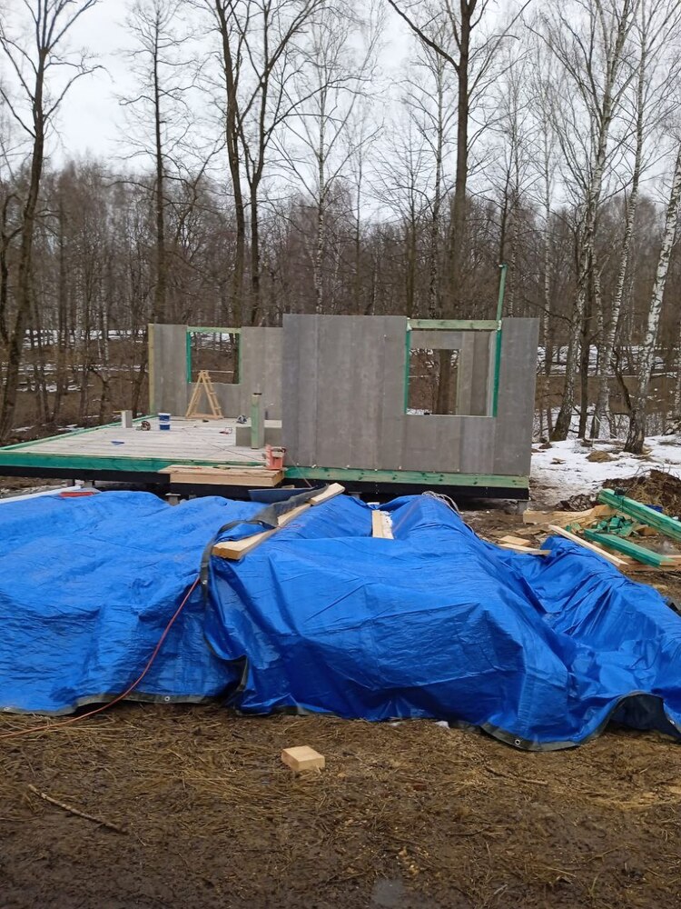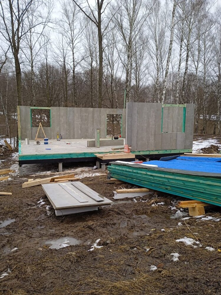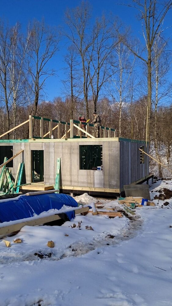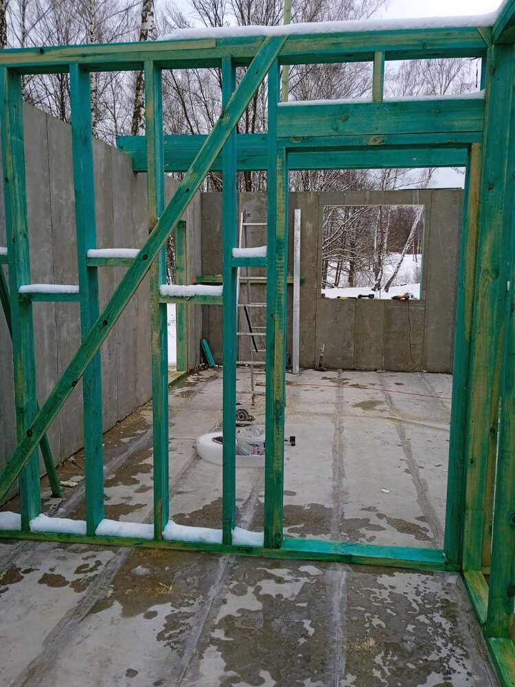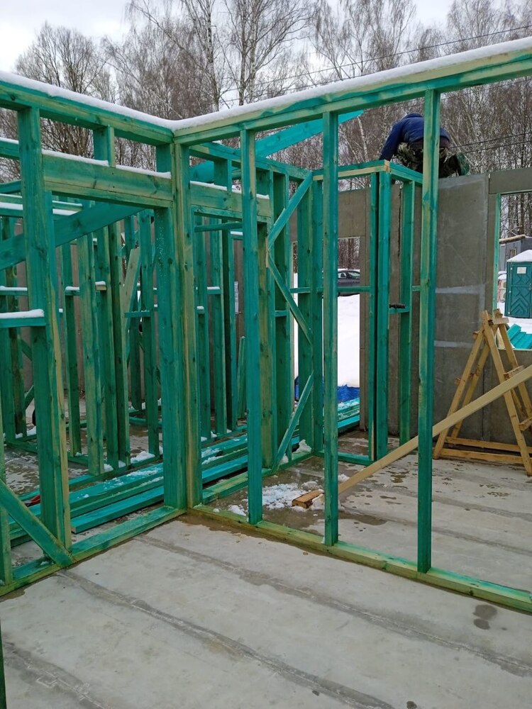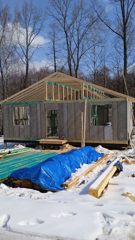 Ростверк изготовлен из калиброванного клееного бруса и защищен снаружи цементно-стружечной плитой