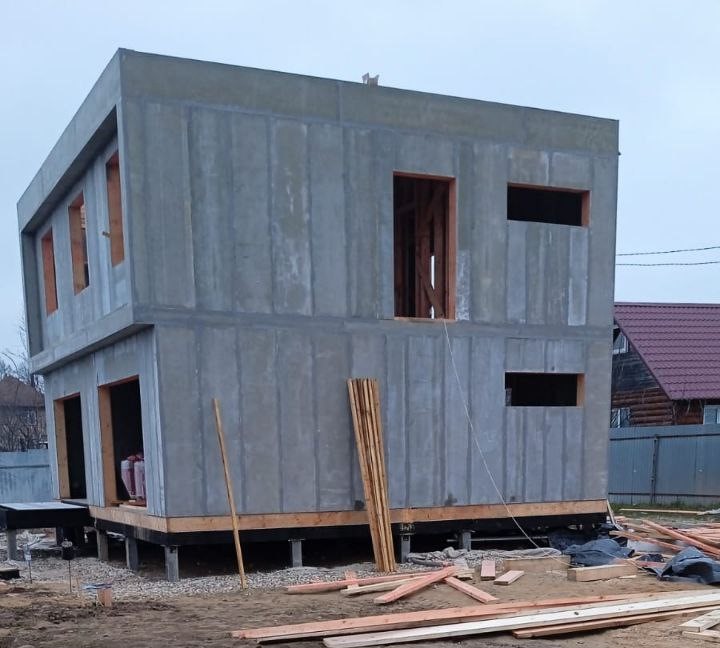 Ростверк изготовлен из калиброванного клееного бруса и защищен снаружи цементно-стружечной плитой