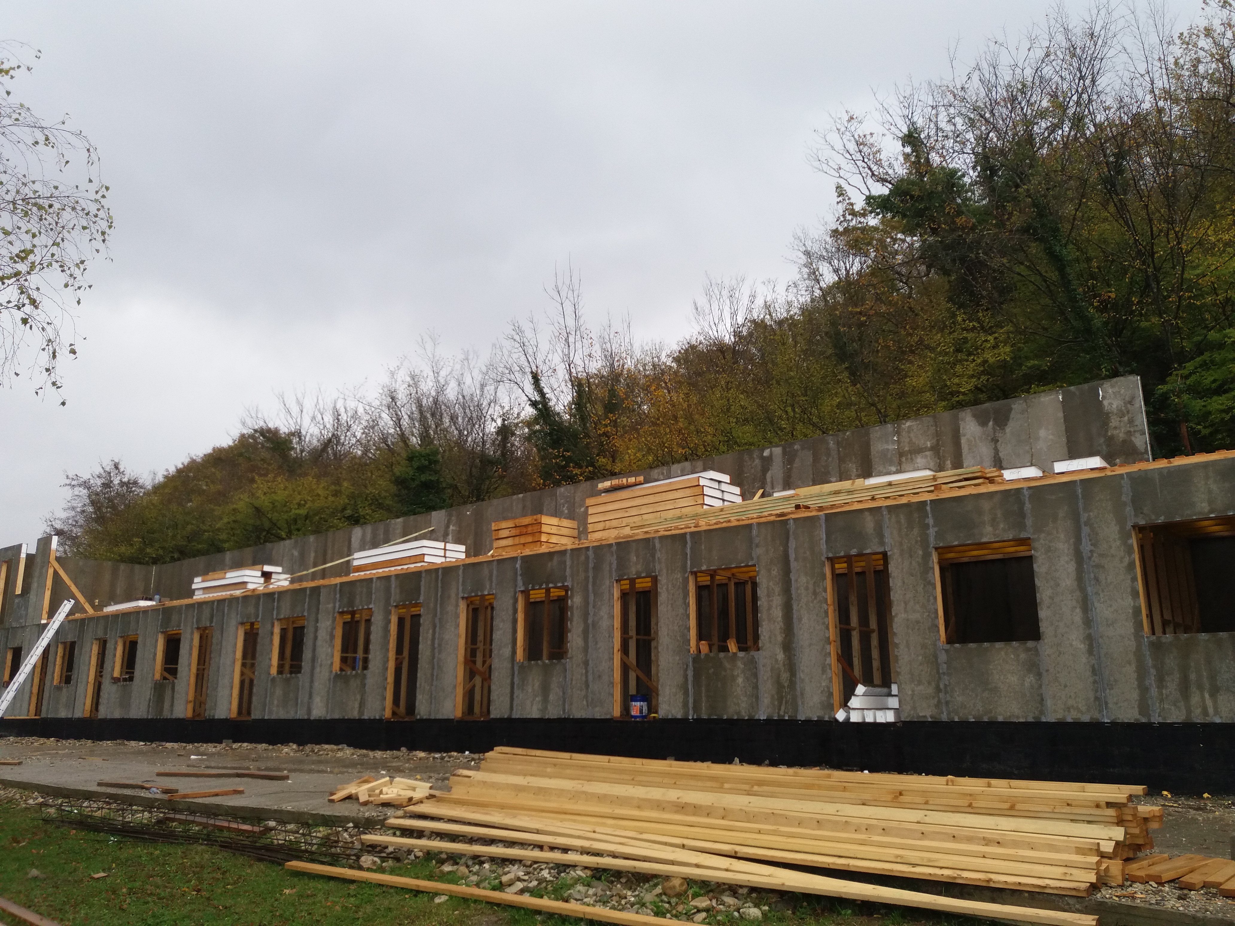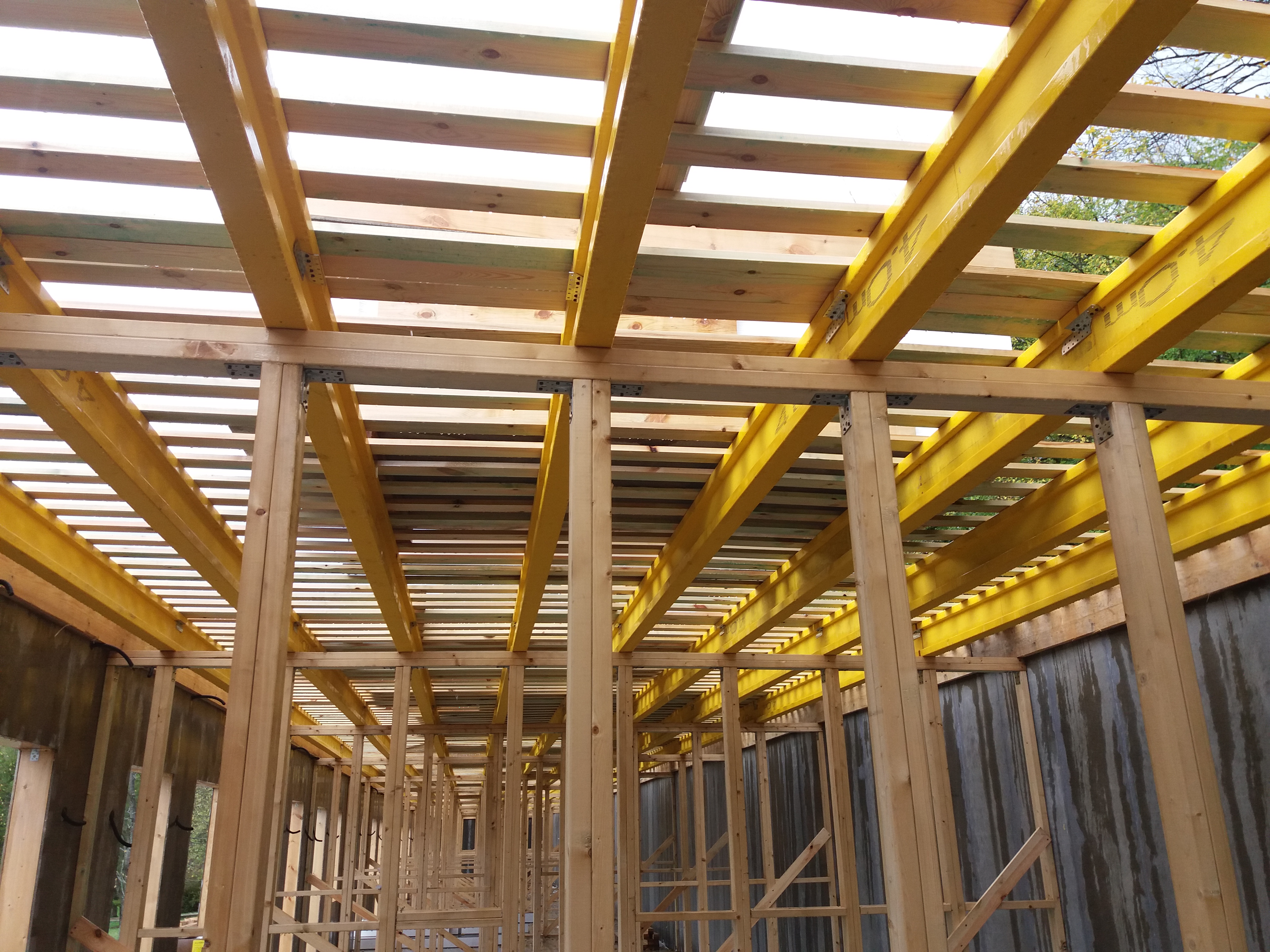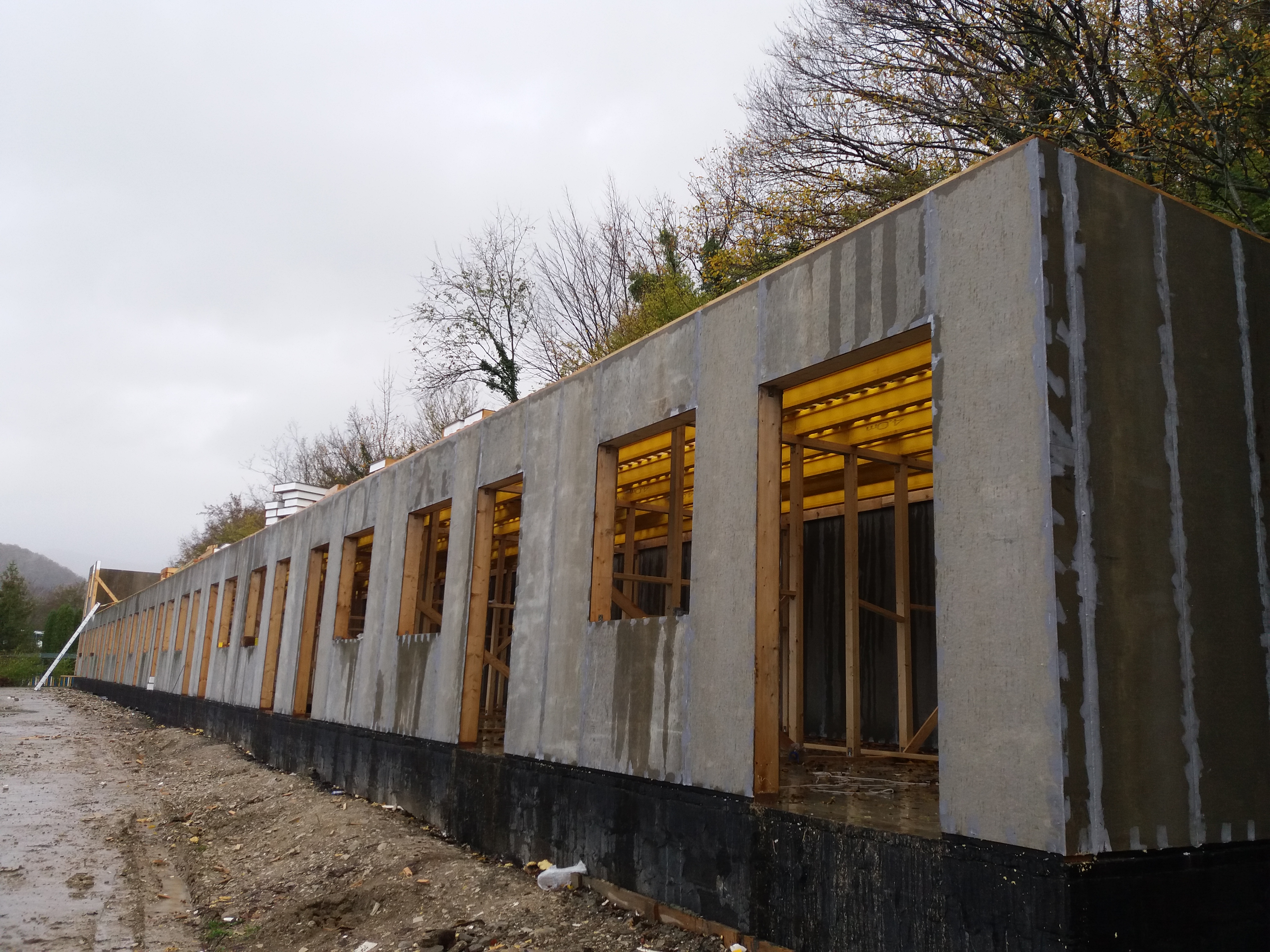 Ростверк изготовлен из калиброванного клееного бруса и защищен снаружи цементно-стружечной плитой