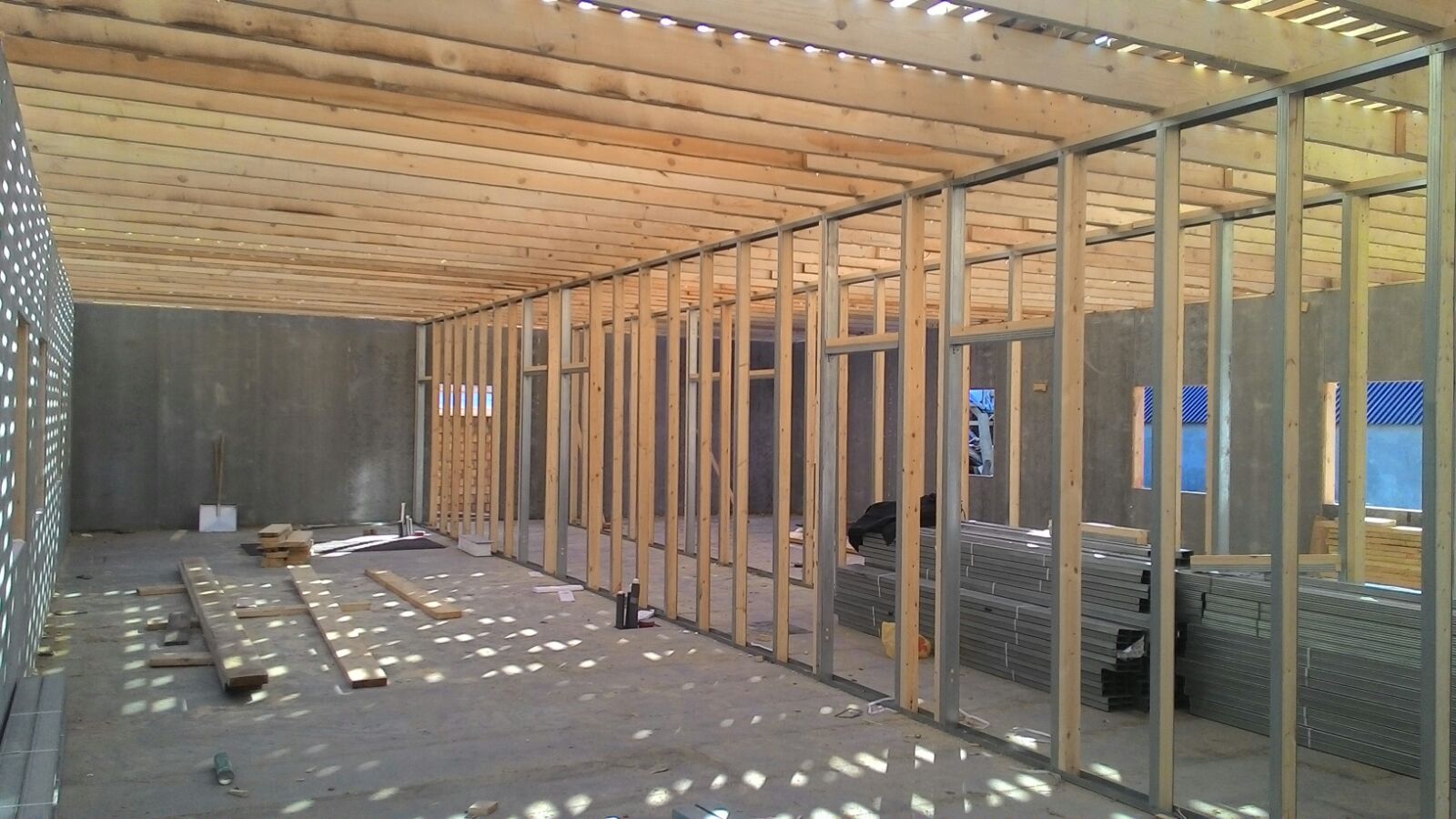 Ростверк изготовлен из калиброванного клееного бруса и защищен снаружи цементно-стружечной плитой