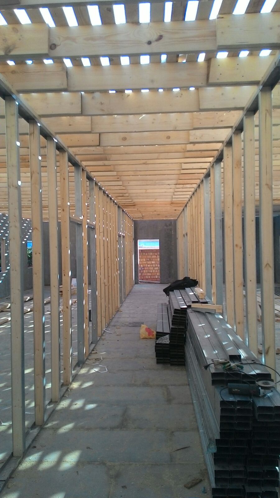 Потолок состоит из двутавровых балок 250 мм, а шаг монтажа балок - 600 мм.
