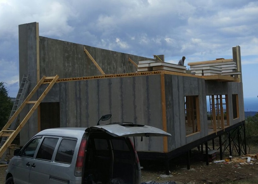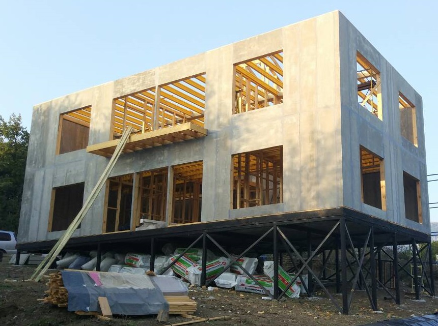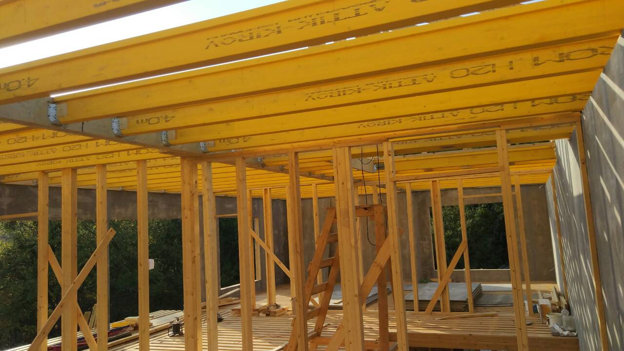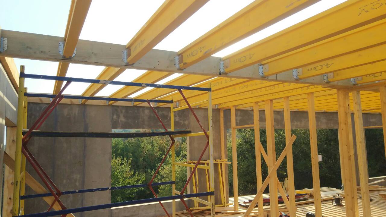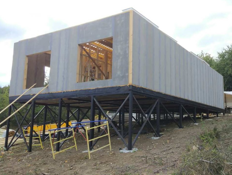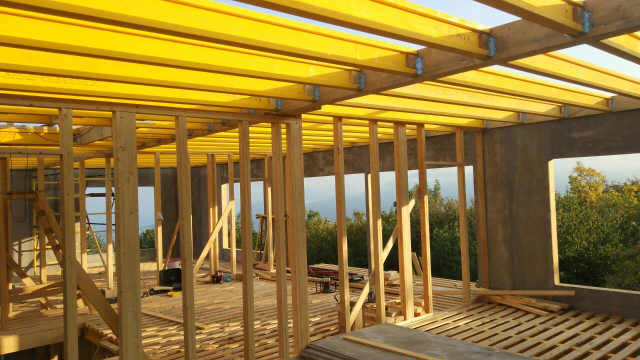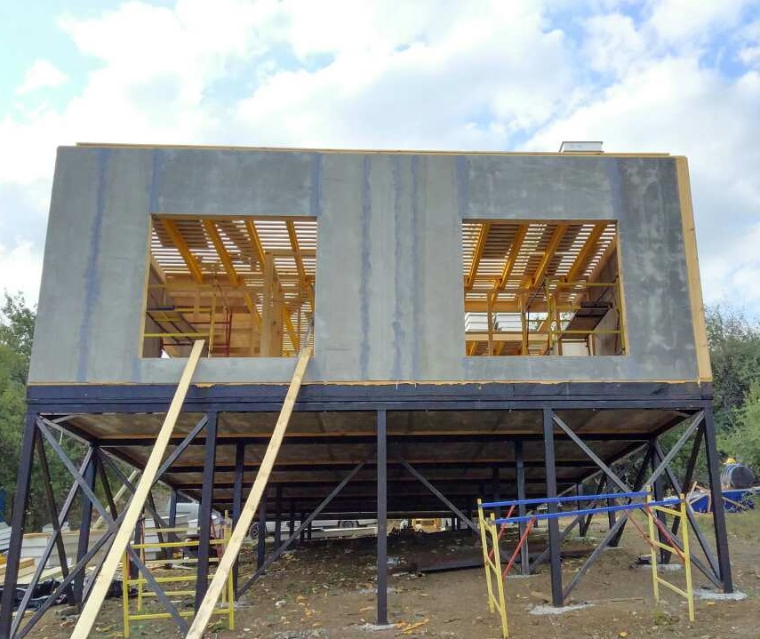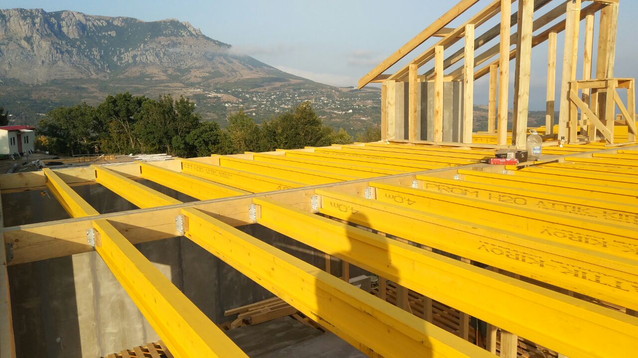 Ростверк изготовлен из калиброванного клееного бруса и защищен снаружи цементно-стружечной плитой