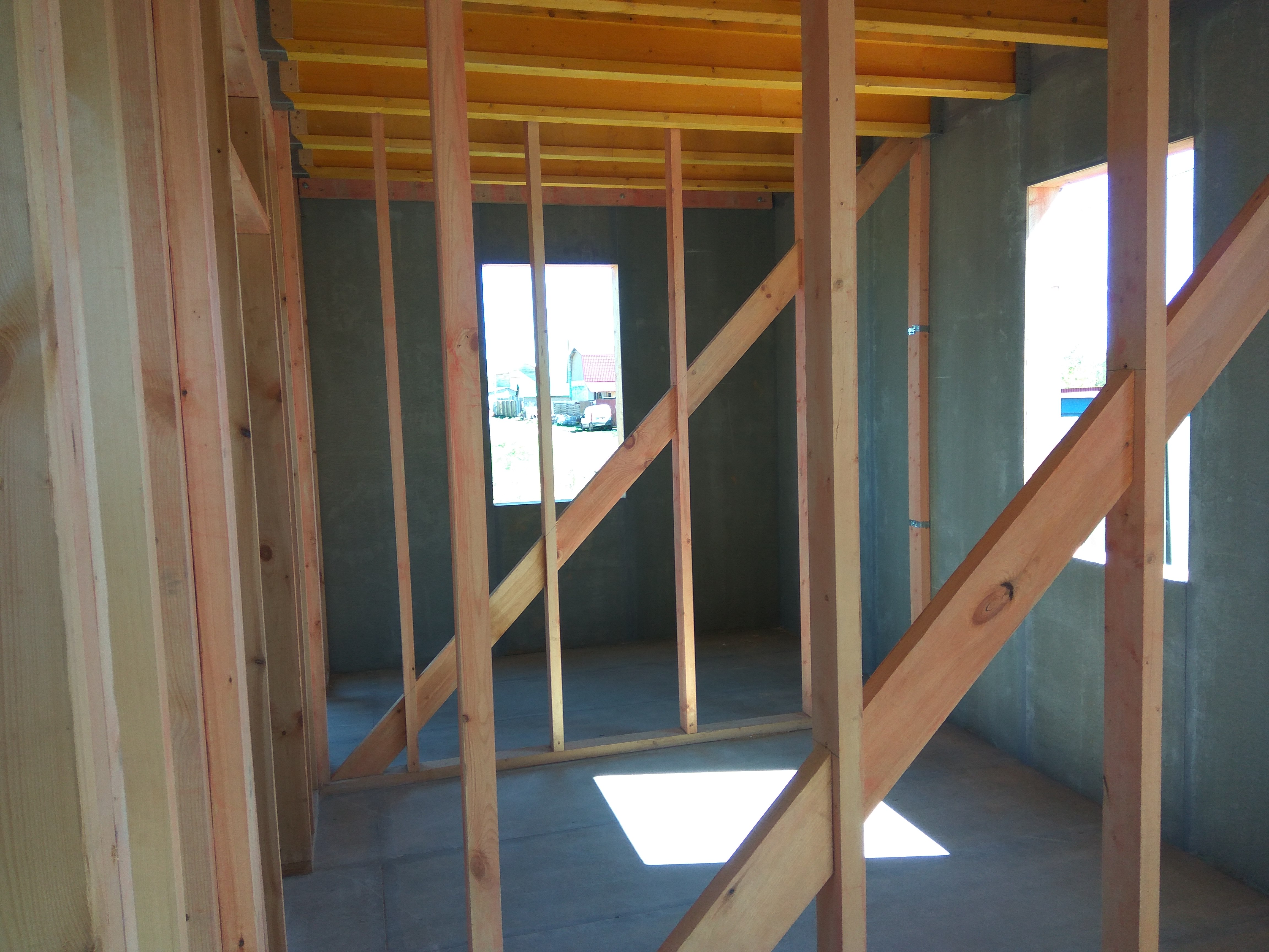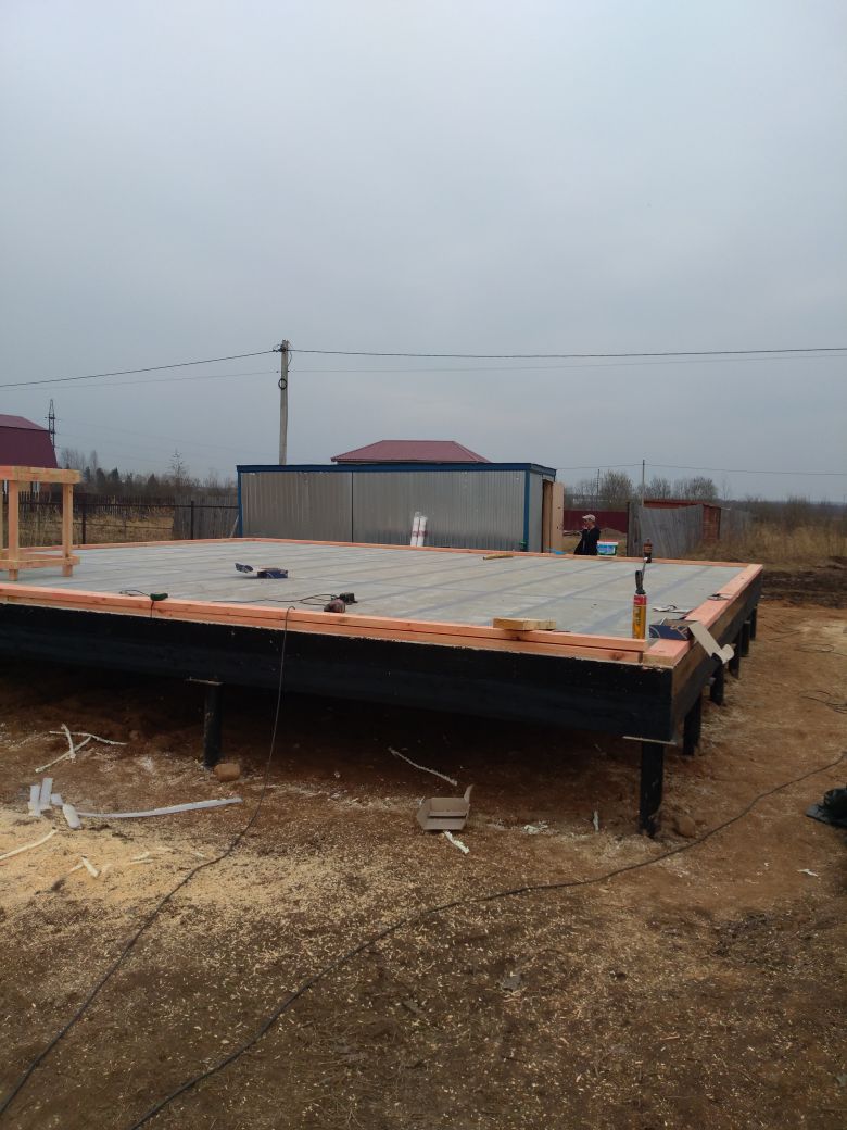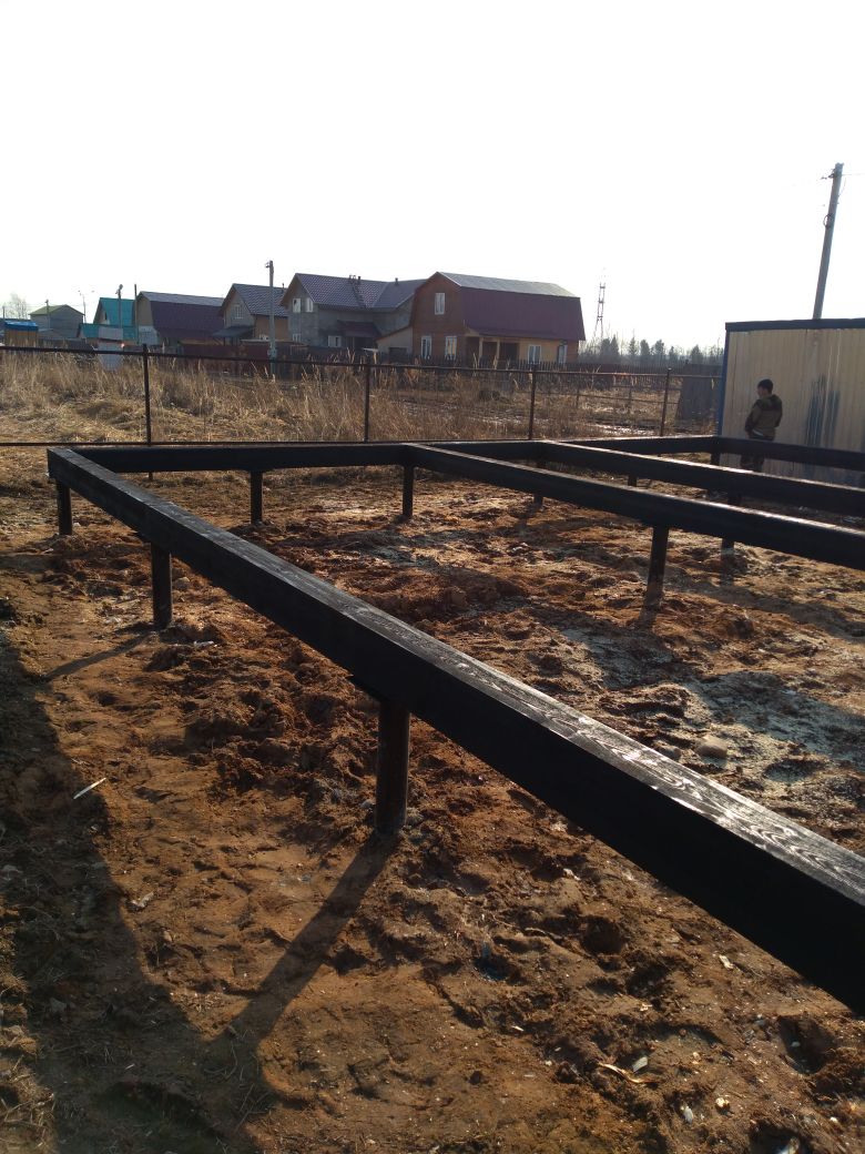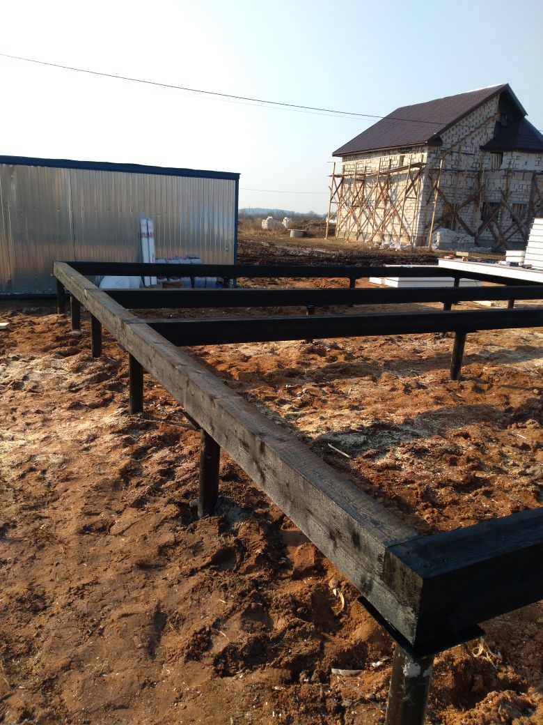 Ростверк изготовлен из калиброванного клееного бруса и защищен снаружи цементно-стружечной плитой