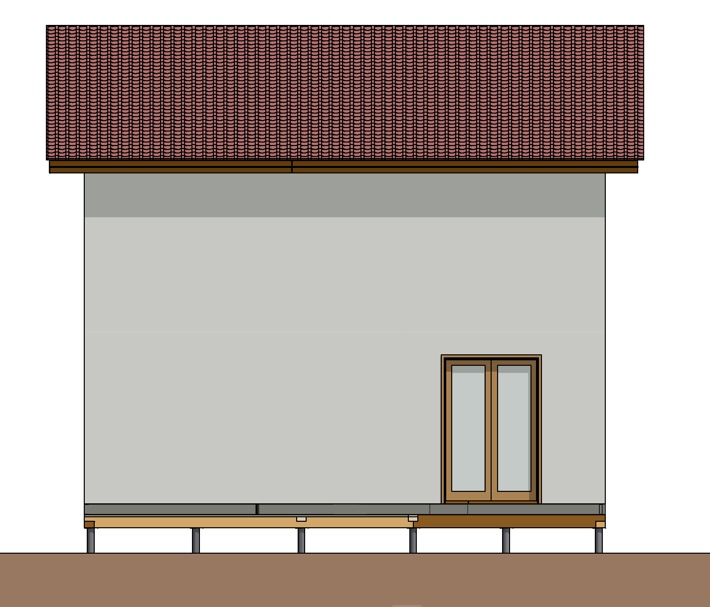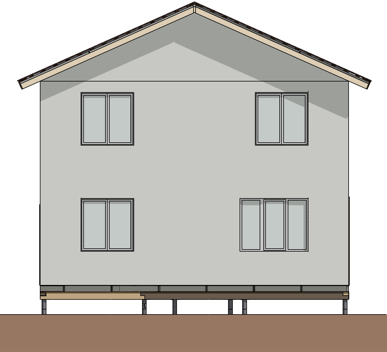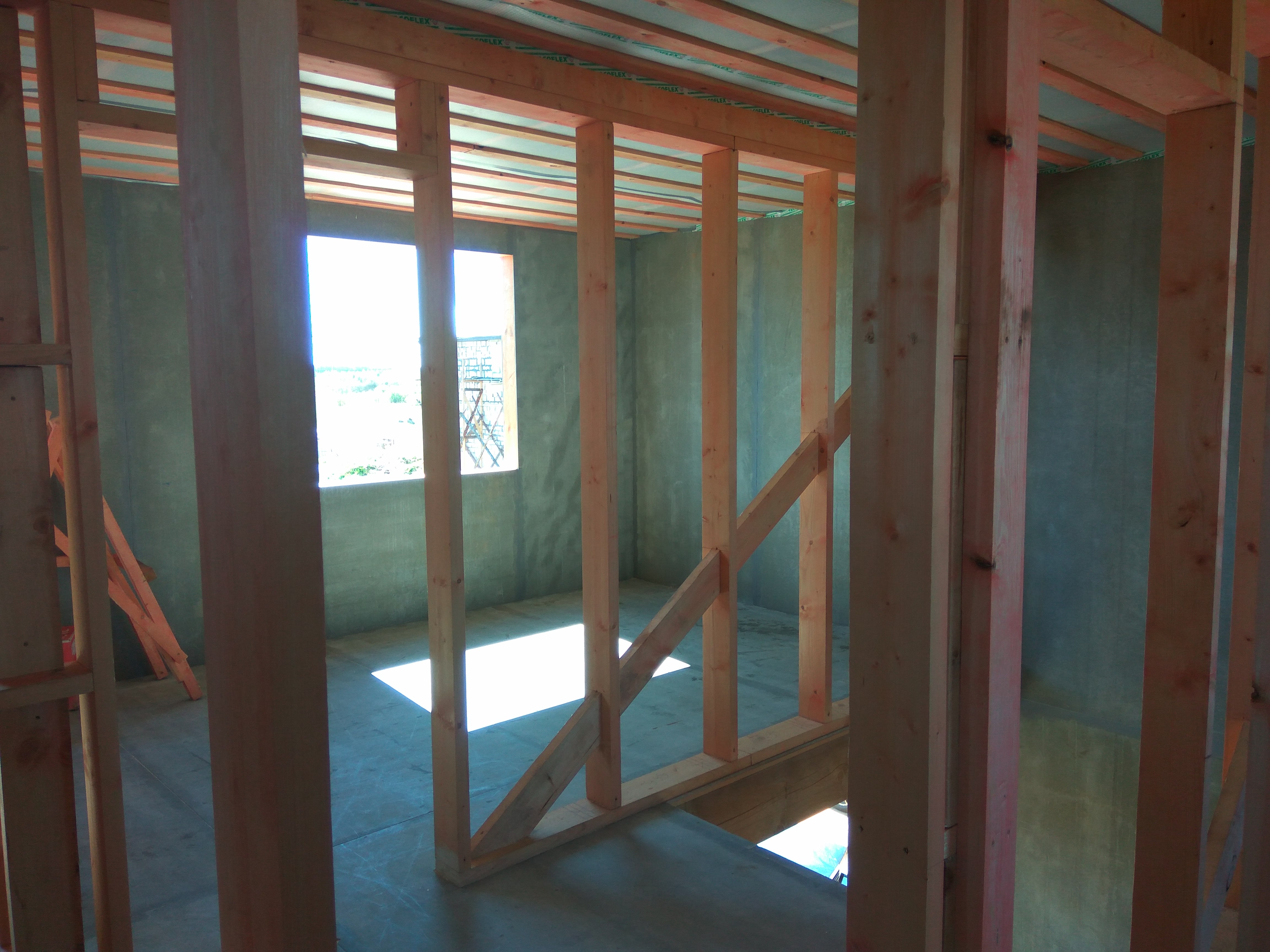Ростверк изготовлен из калиброванного клееного бруса и защищен снаружи цементно-стружечной плитой