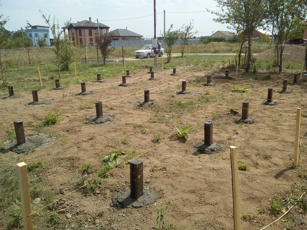 Ростверк изготовлен из калиброванного клееного бруса и защищен снаружи цементно-стружечной плитой