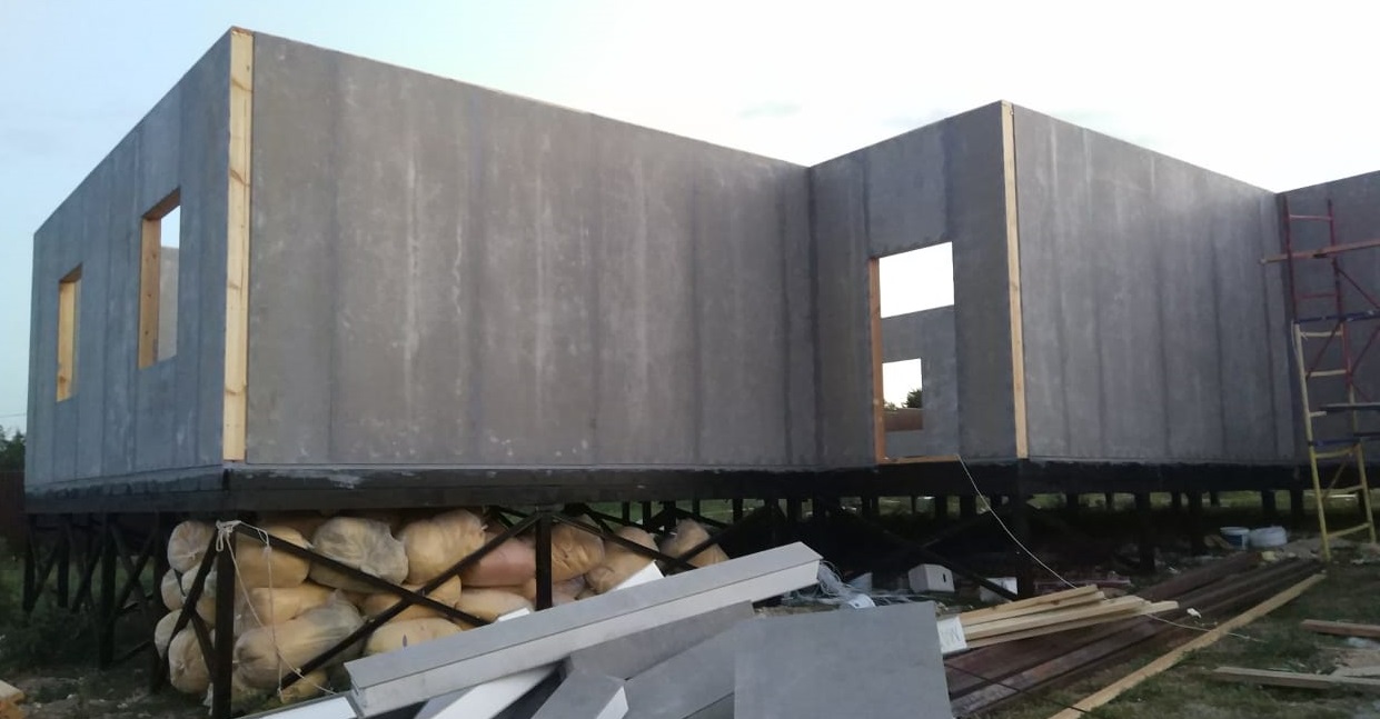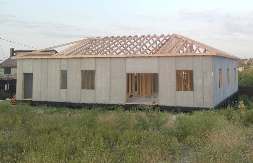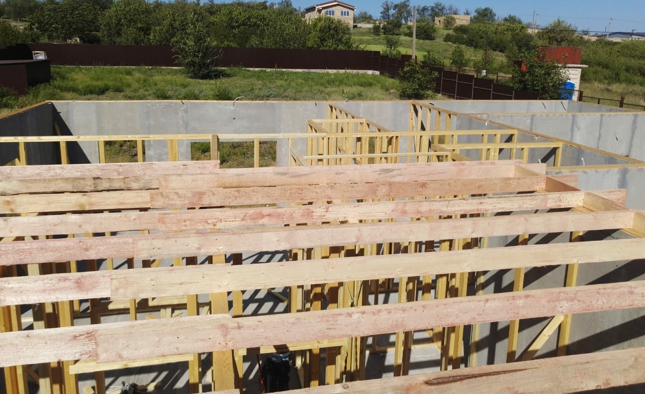 Ростверк изготовлен из калиброванного клееного бруса и защищен снаружи цементно-стружечной плитой