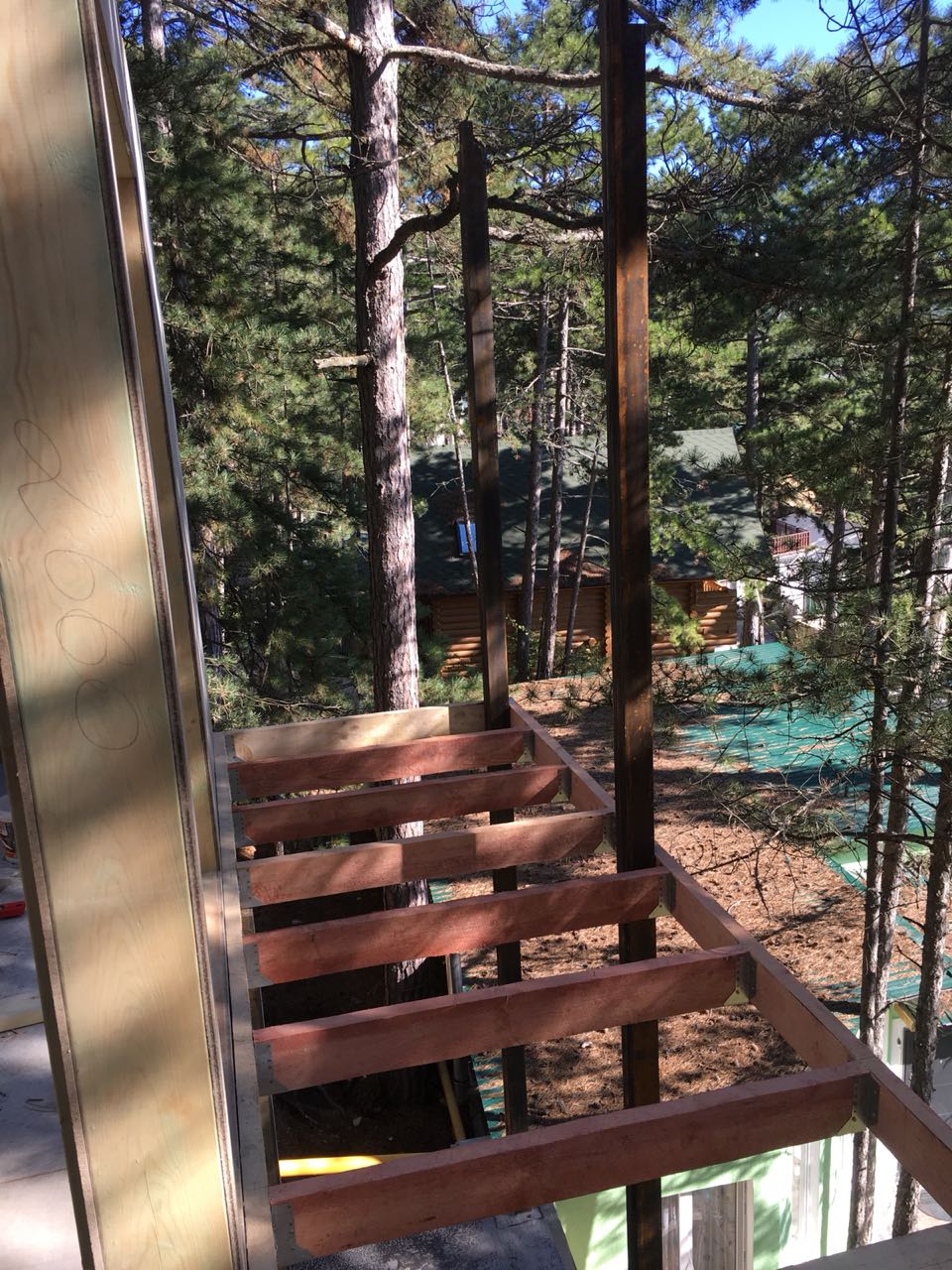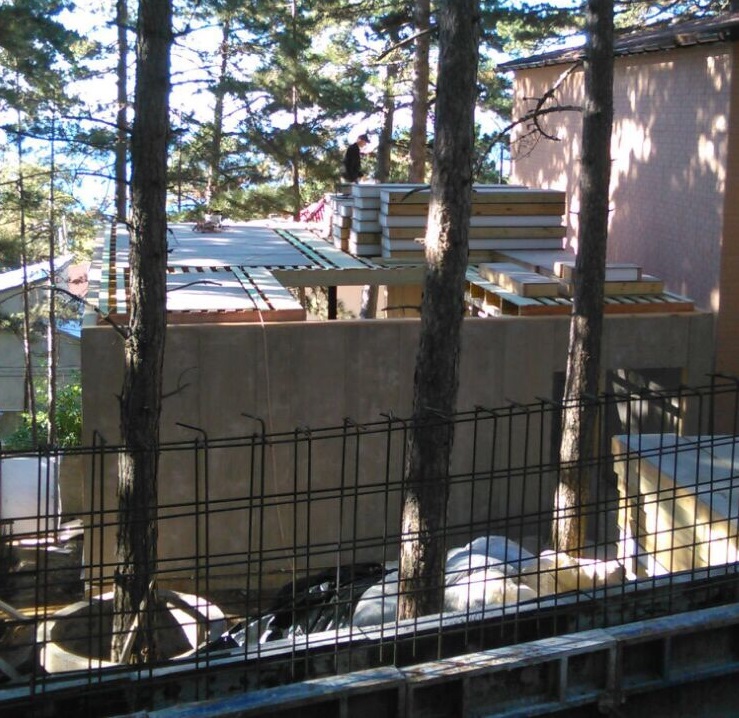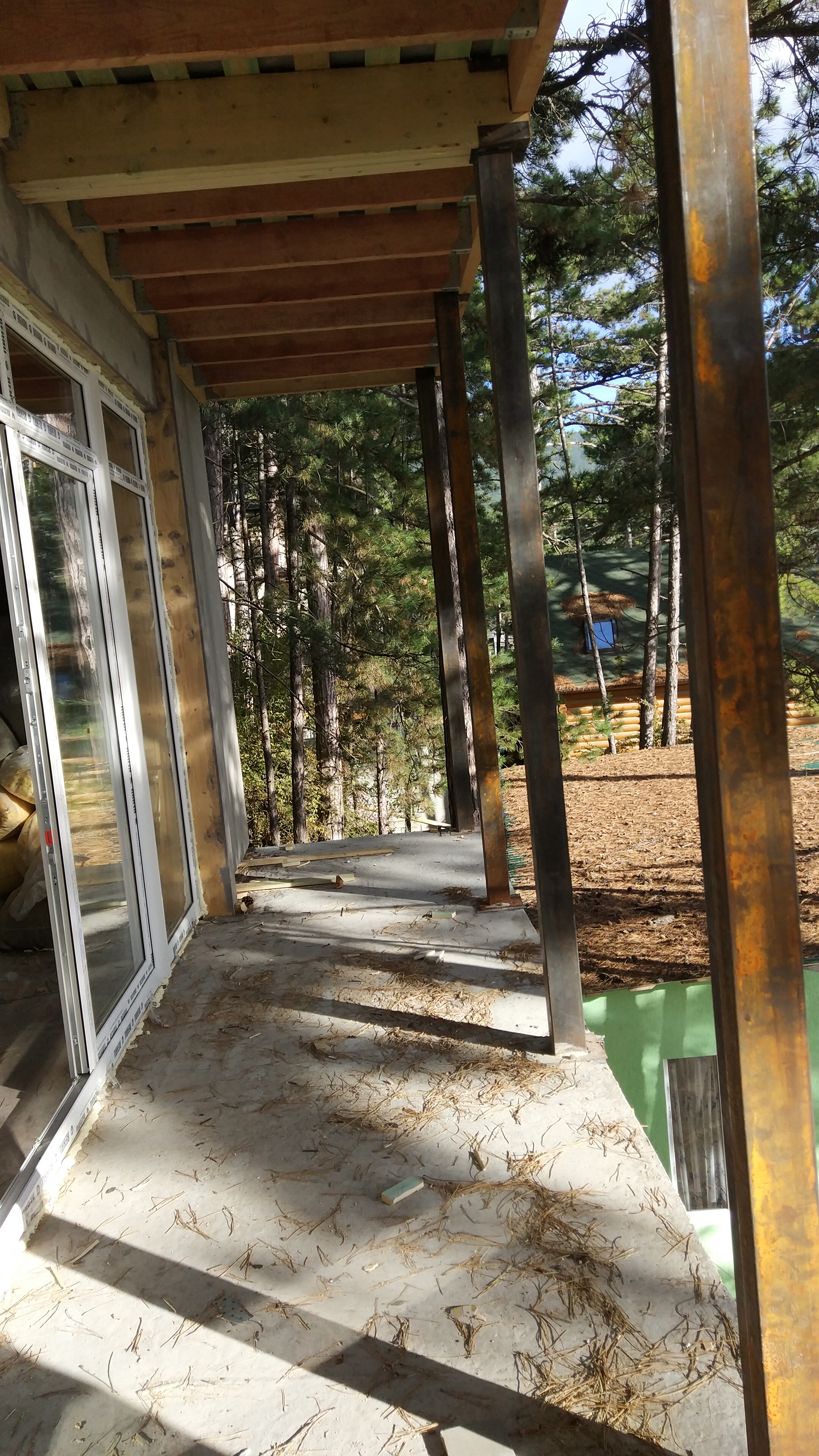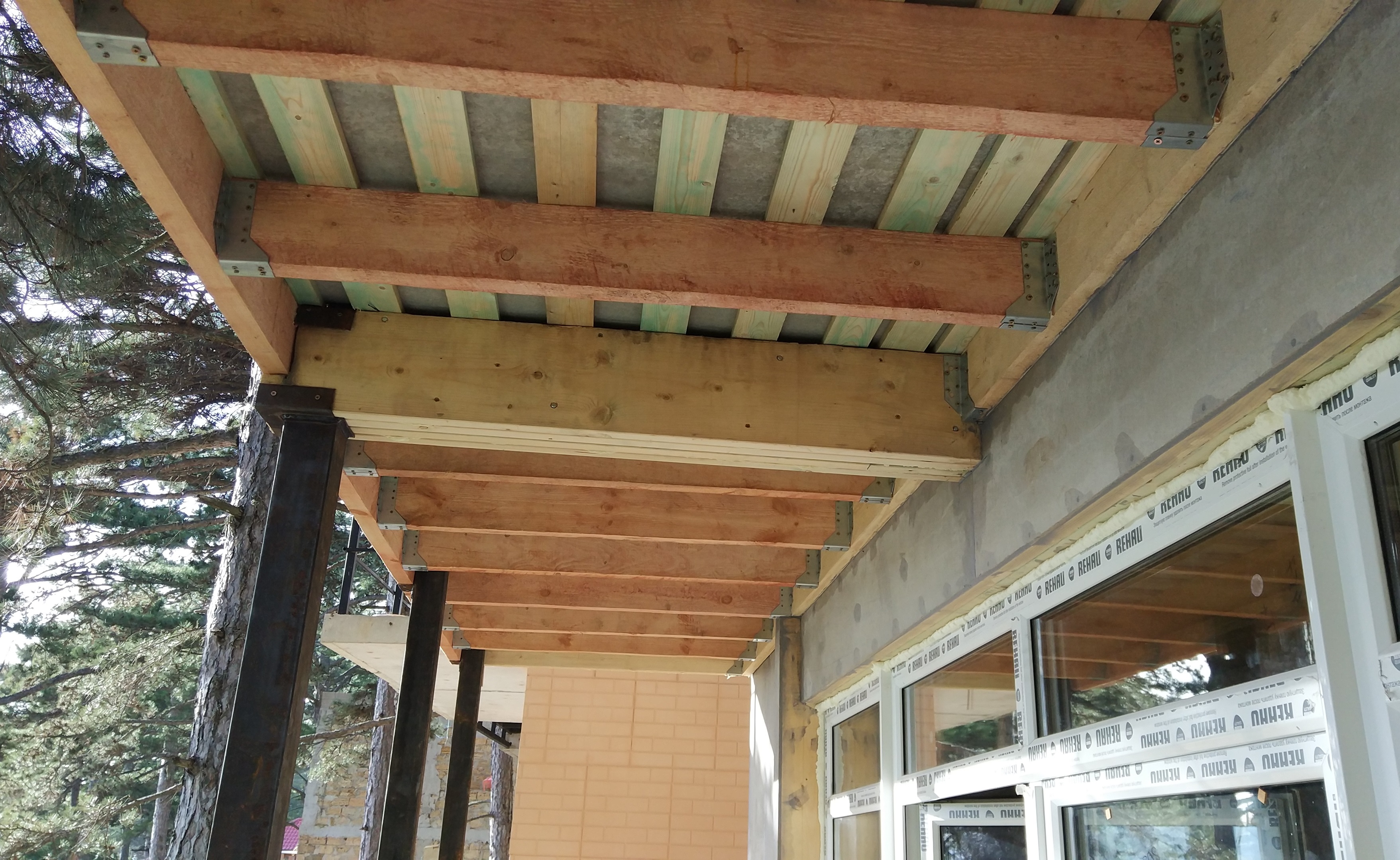 Ростверк изготовлен из калиброванного клееного бруса и защищен снаружи цементно-стружечной плитой