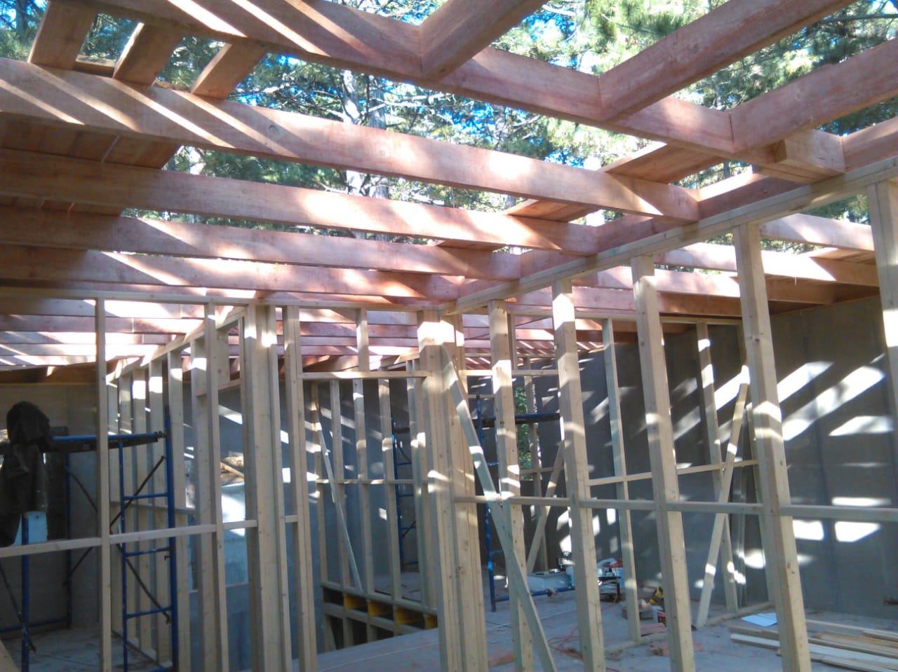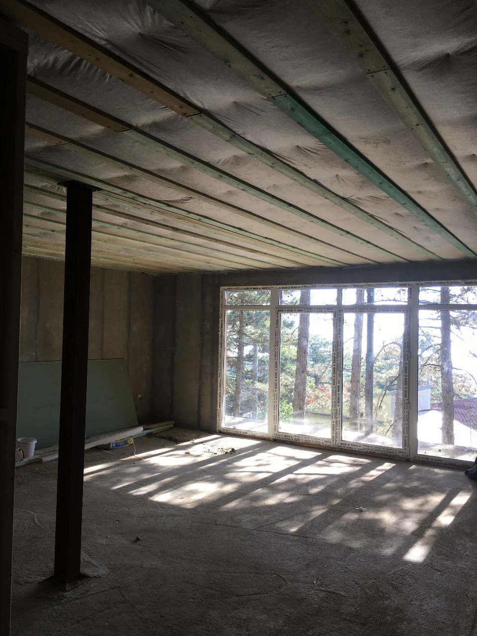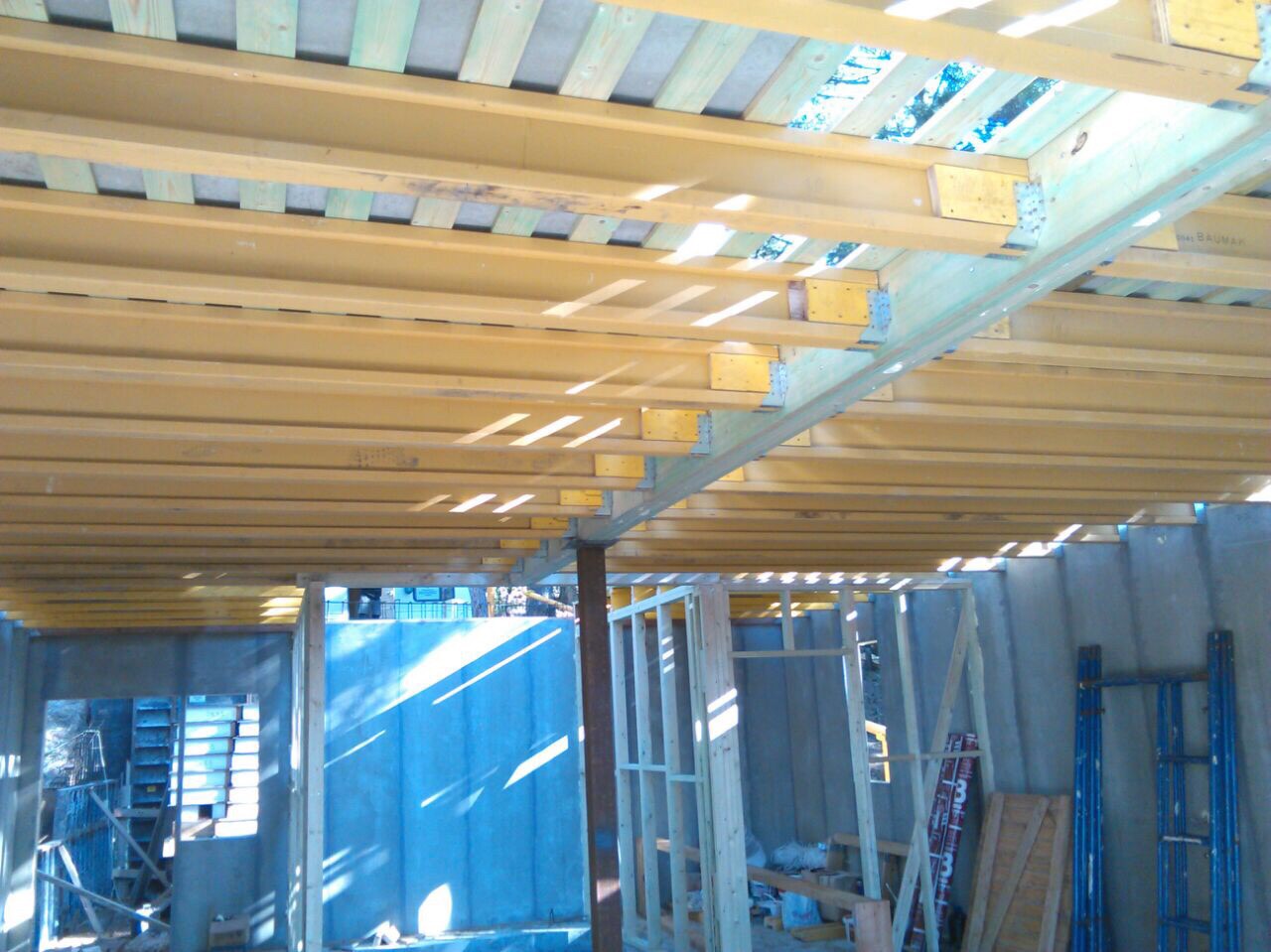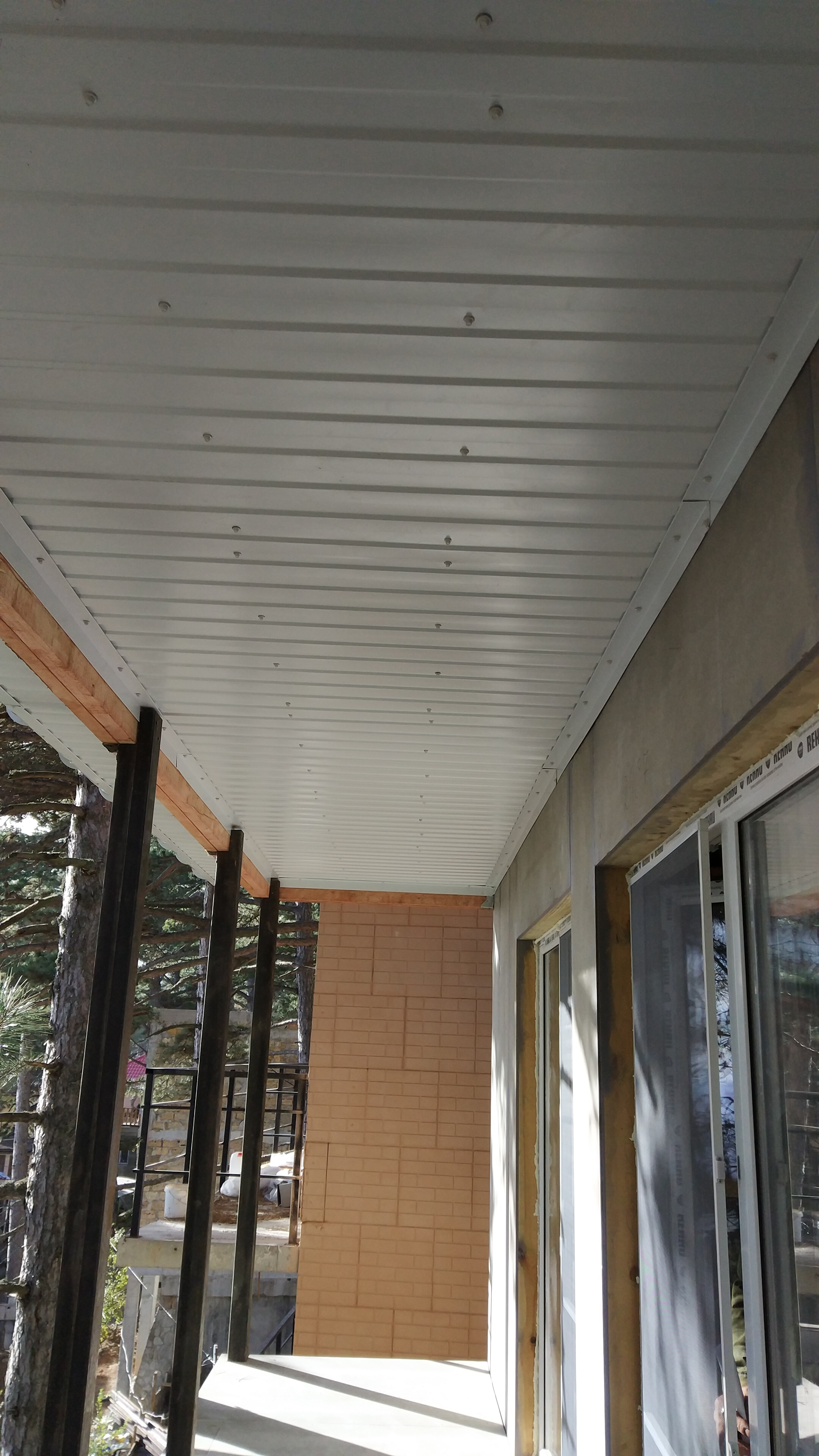 Ростверк изготовлен из калиброванного клееного бруса и защищен снаружи цементно-стружечной плитой