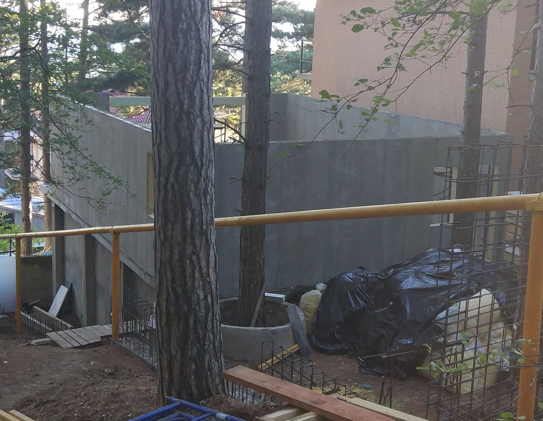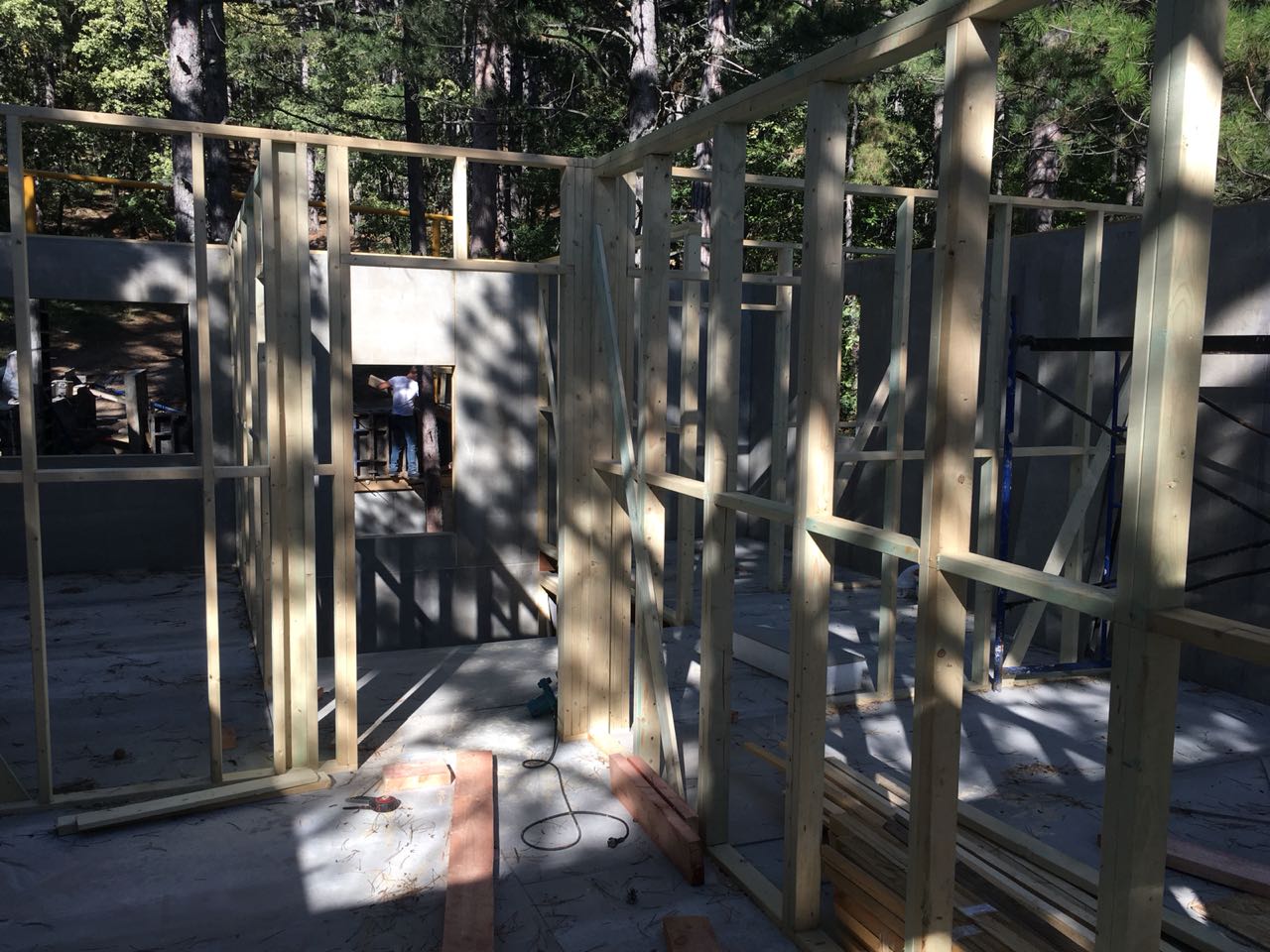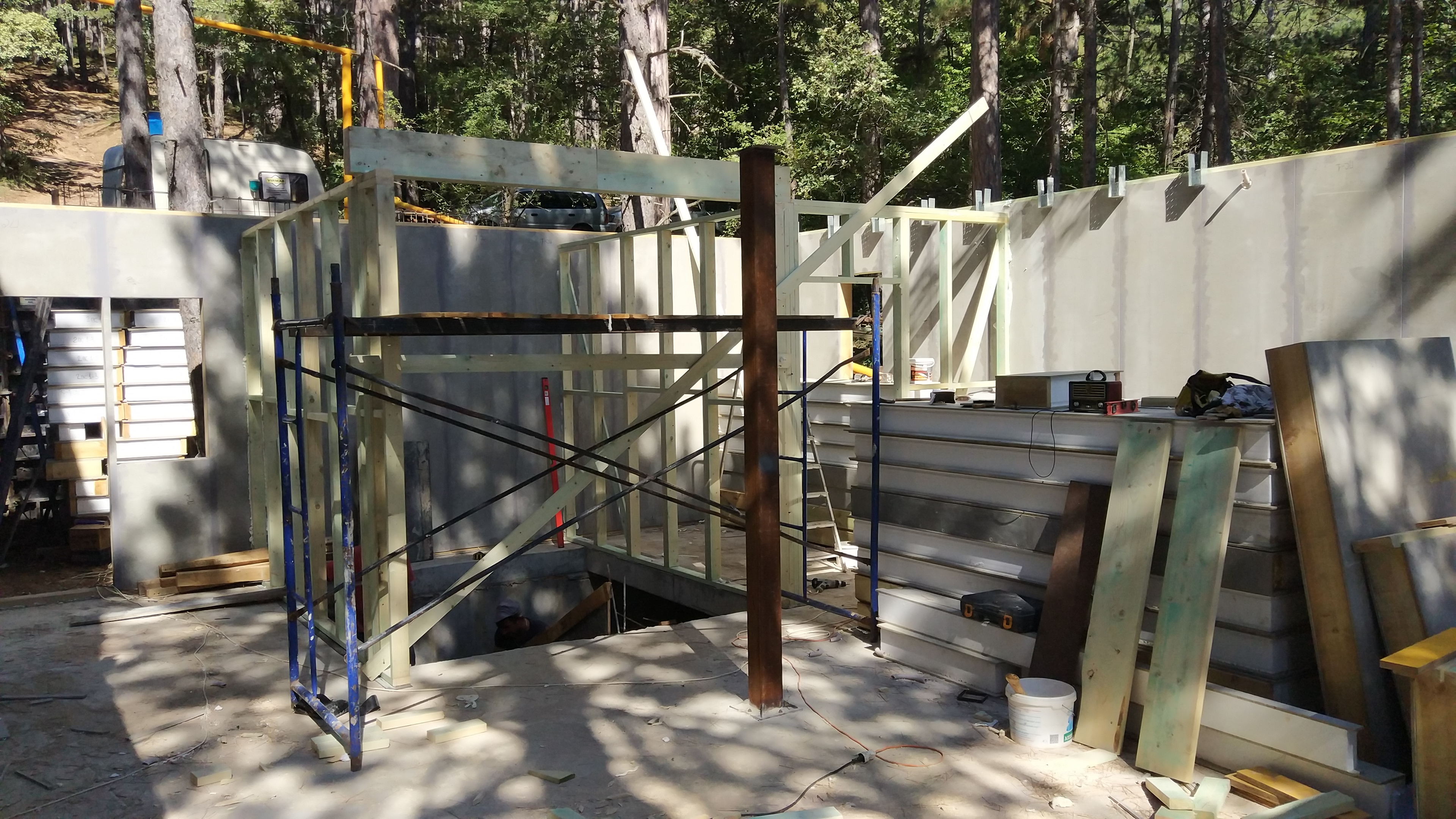Ростверк изготовлен из калиброванного клееного бруса и защищен снаружи цементно-стружечной плитой