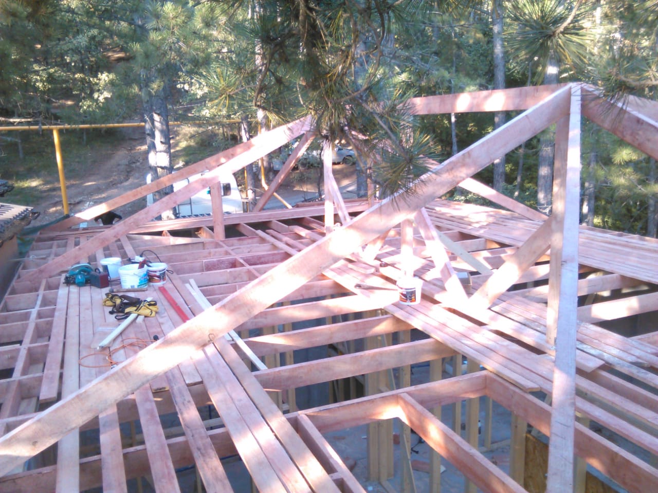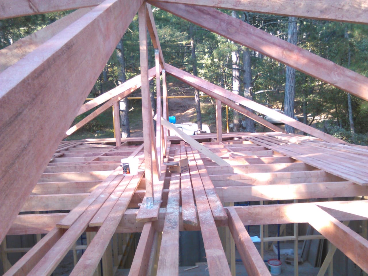 Кровля может быть построена из бруса 150х50мм или SIP панелей. В качестве кровельного материала можно использовать: металлочерепицу, битумную и керамическую черепицу. Также производим кровельные шовные сэндвич-панели.