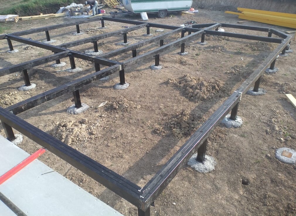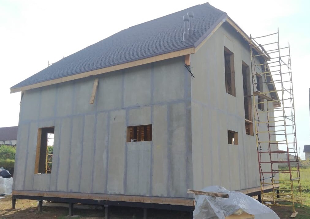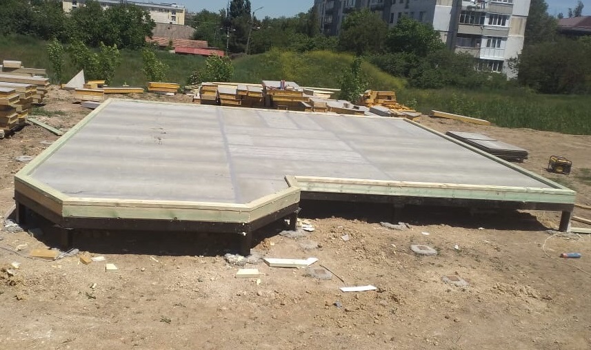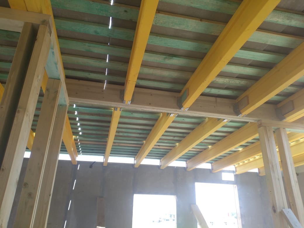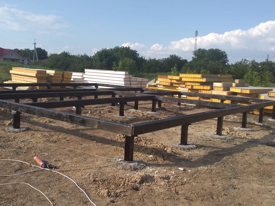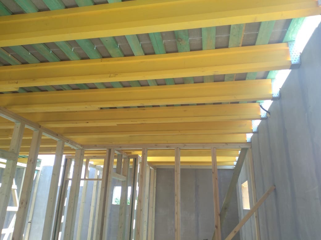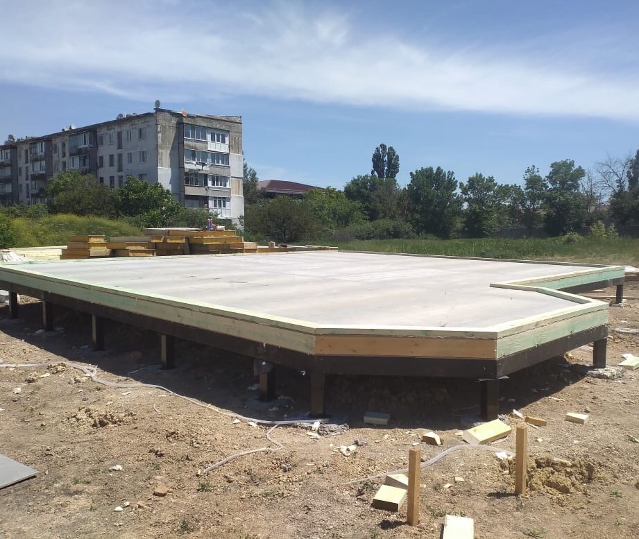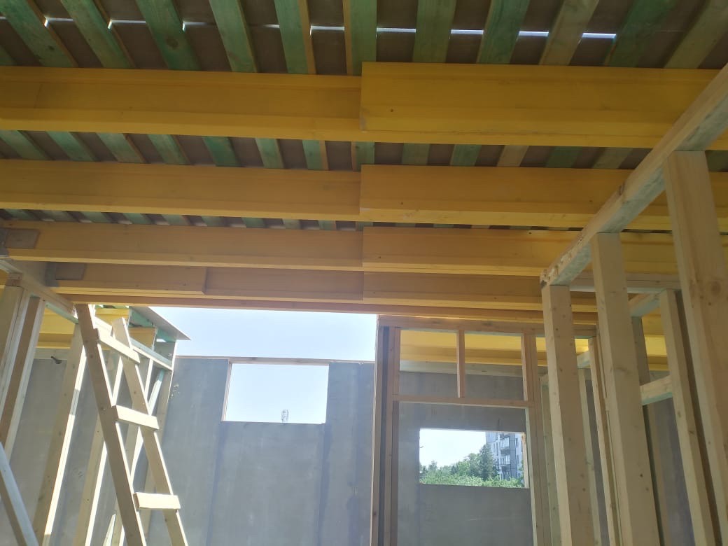 Ростверк изготовлен из калиброванного клееного бруса и защищен снаружи цементно-стружечной плитой