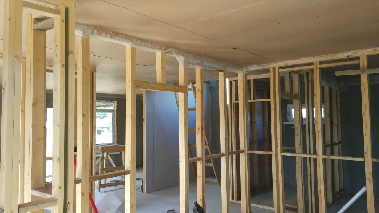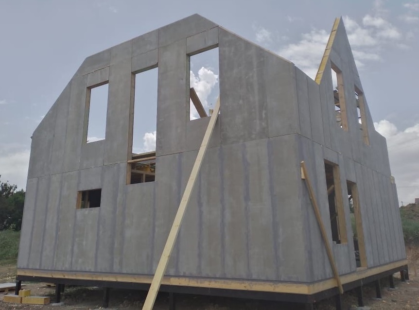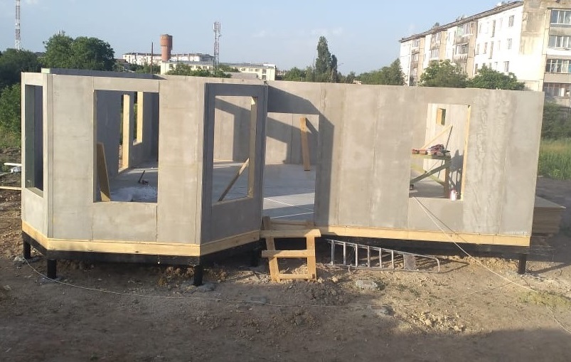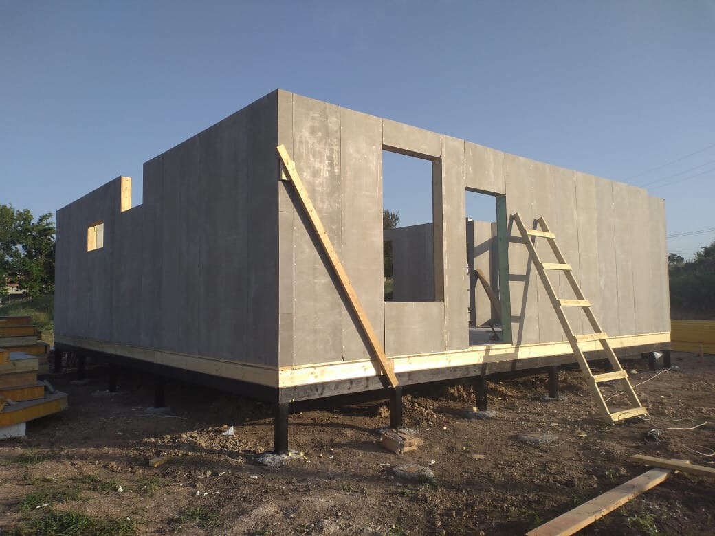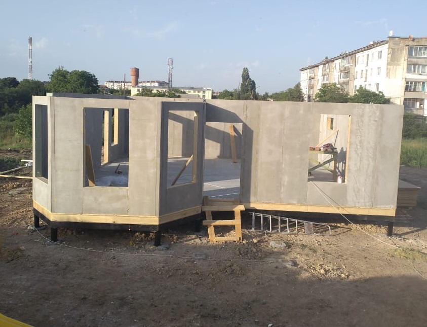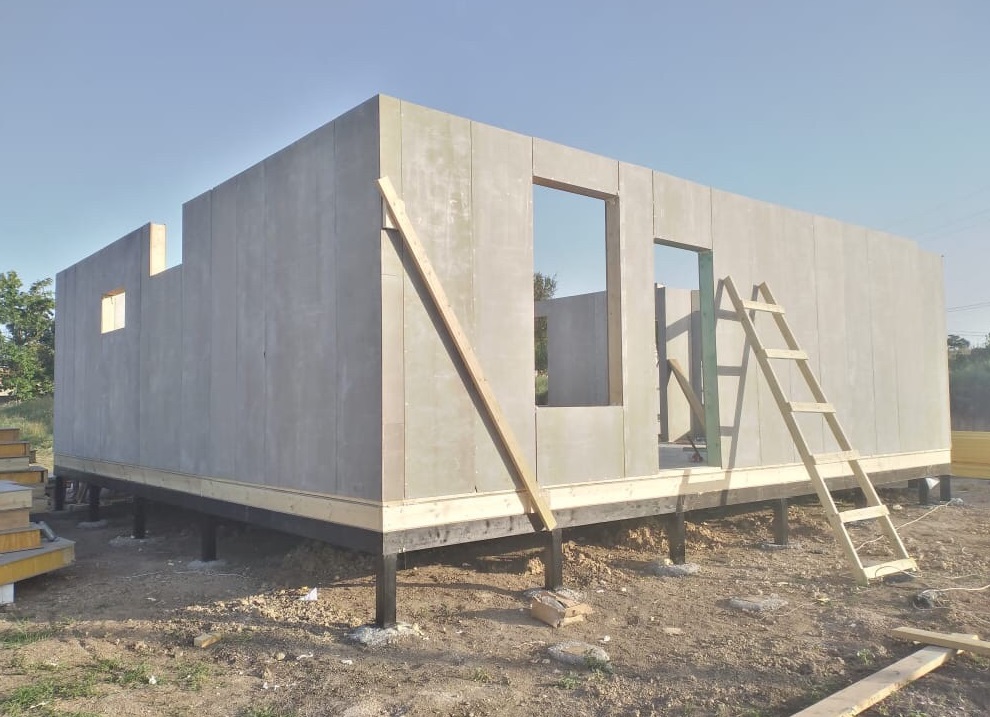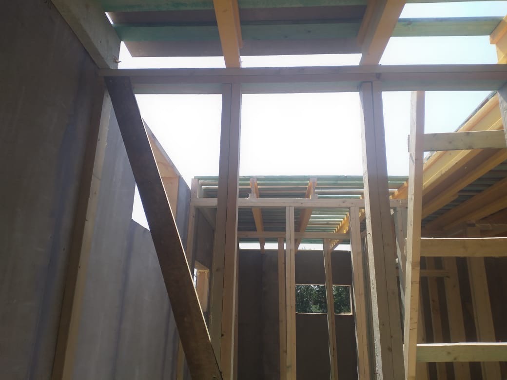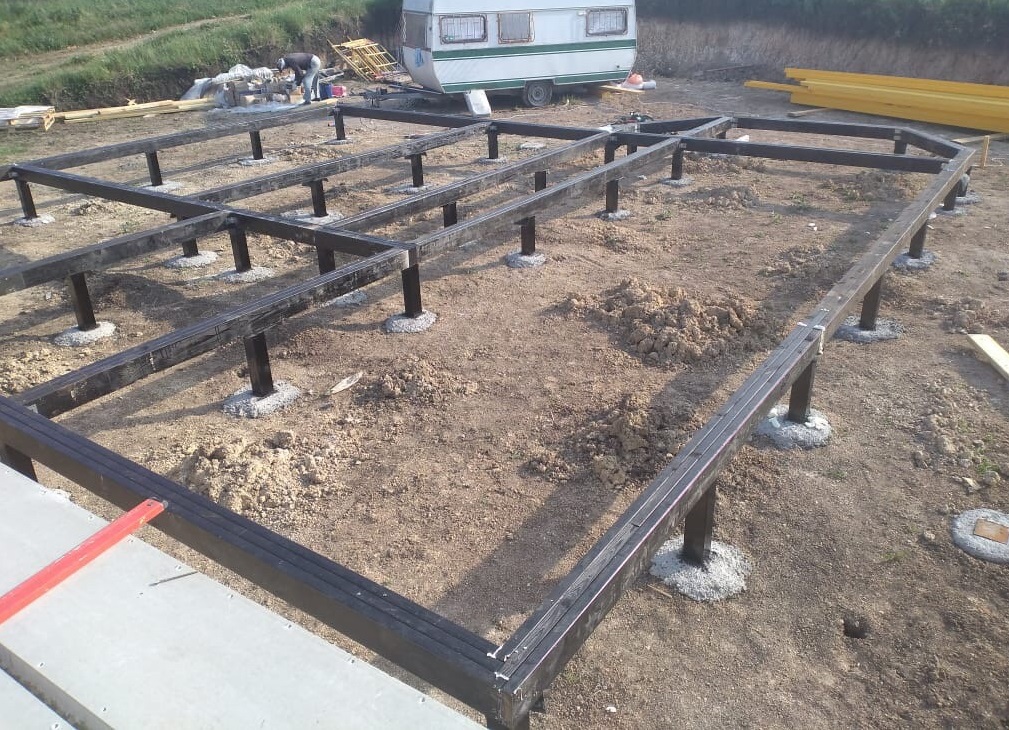 Ростверк изготовлен из калиброванного клееного бруса и защищен снаружи цементно-стружечной плитой