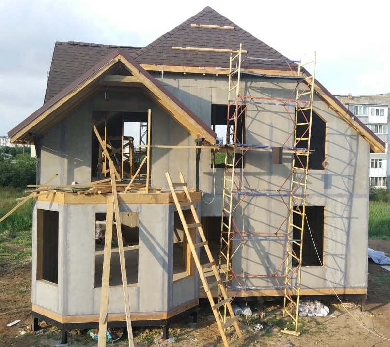 Кровля может быть построена из бруса 150х50мм или SIP панелей. В качестве кровельного материала можно использовать: металлочерепицу, битумную и керамическую черепицу. Также производим кровельные шовные сэндвич-панели.
