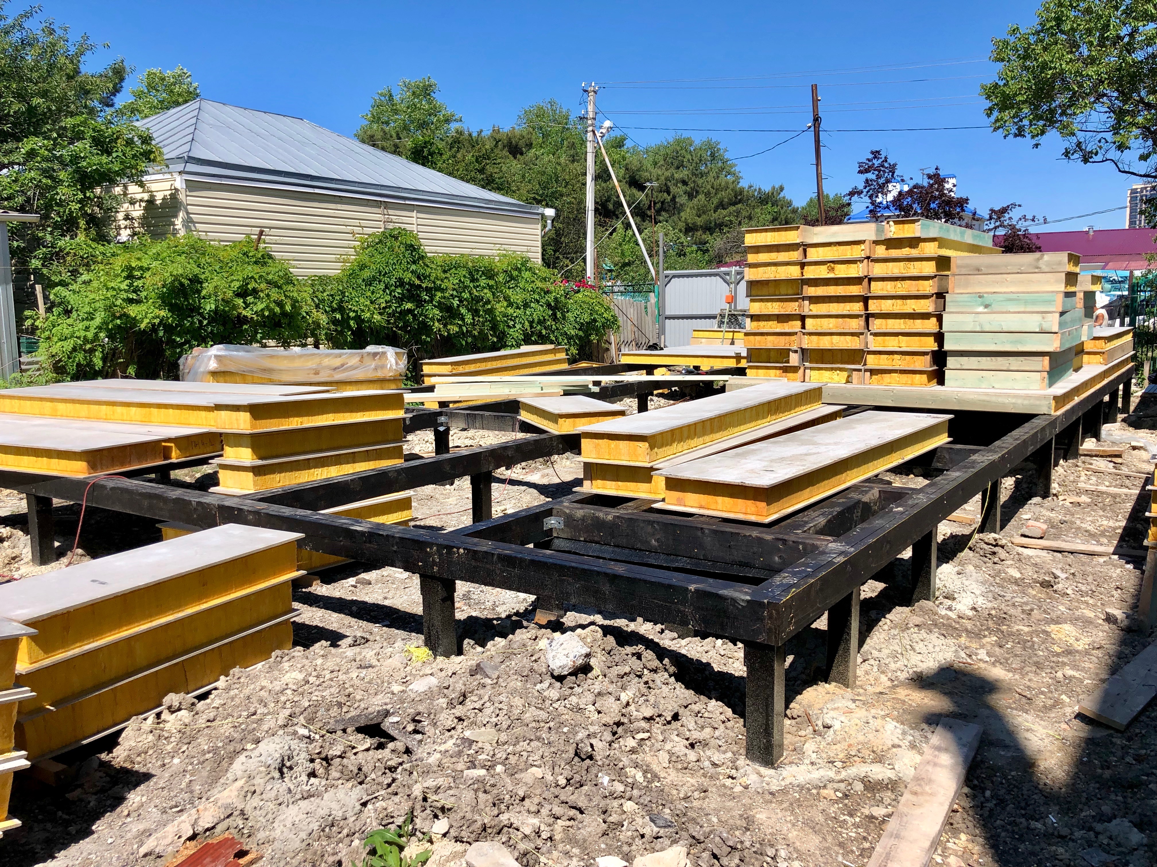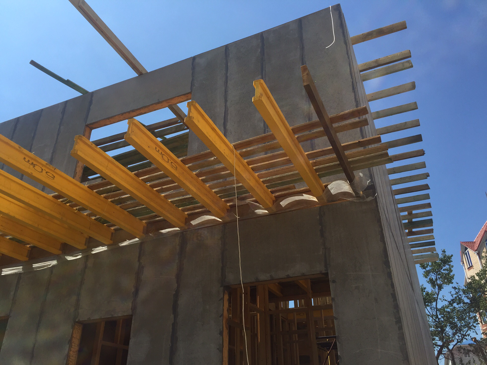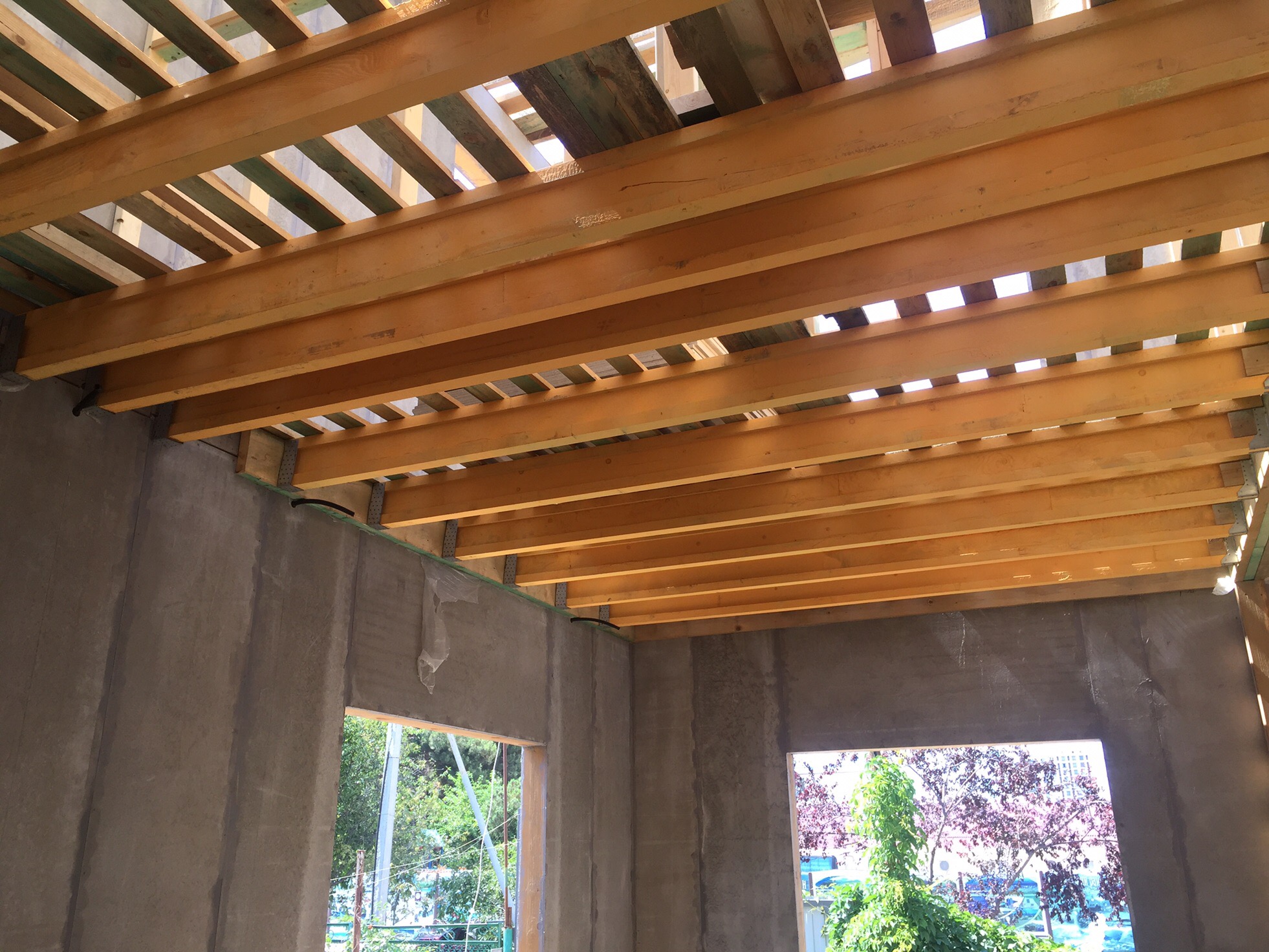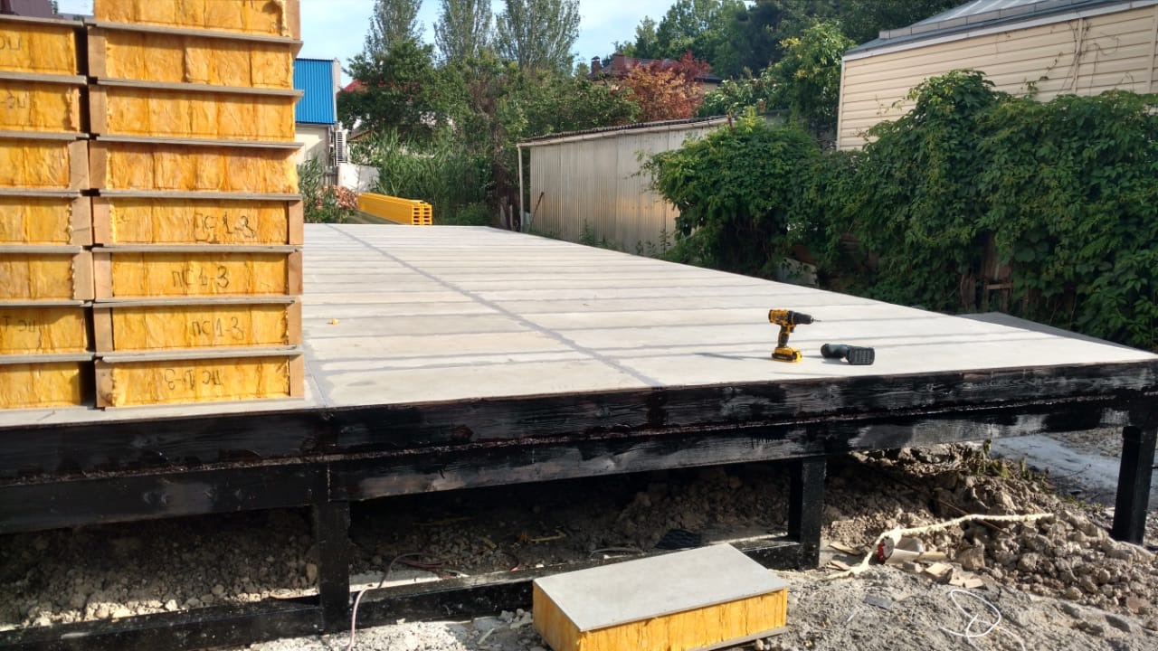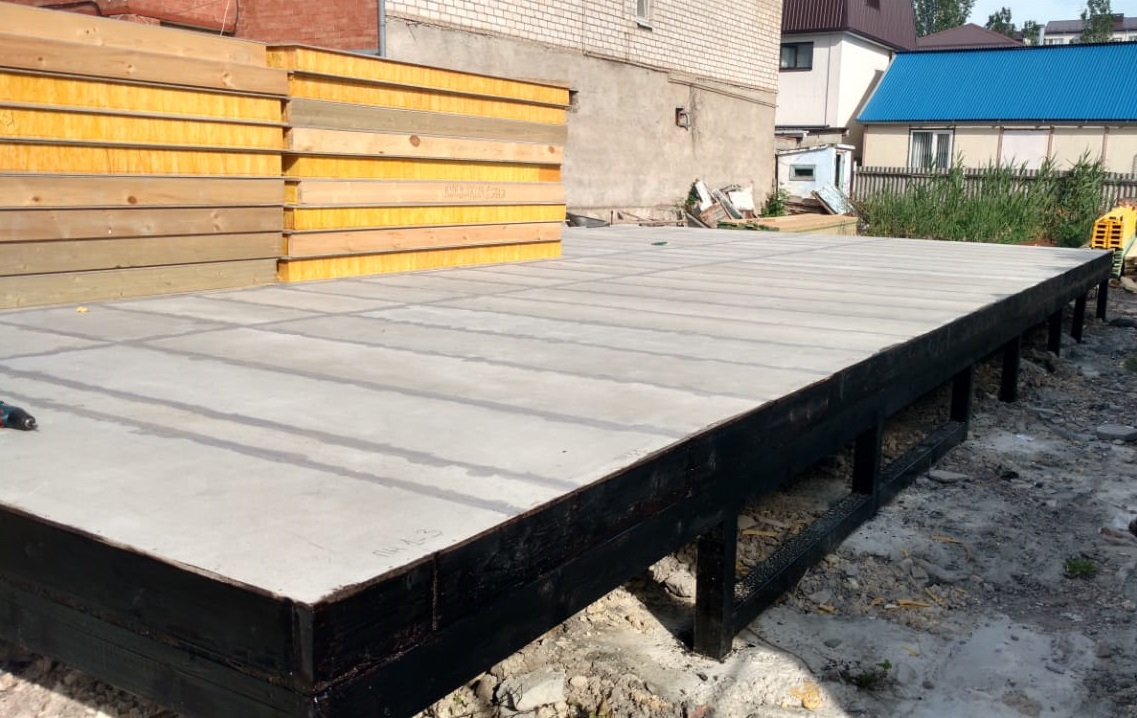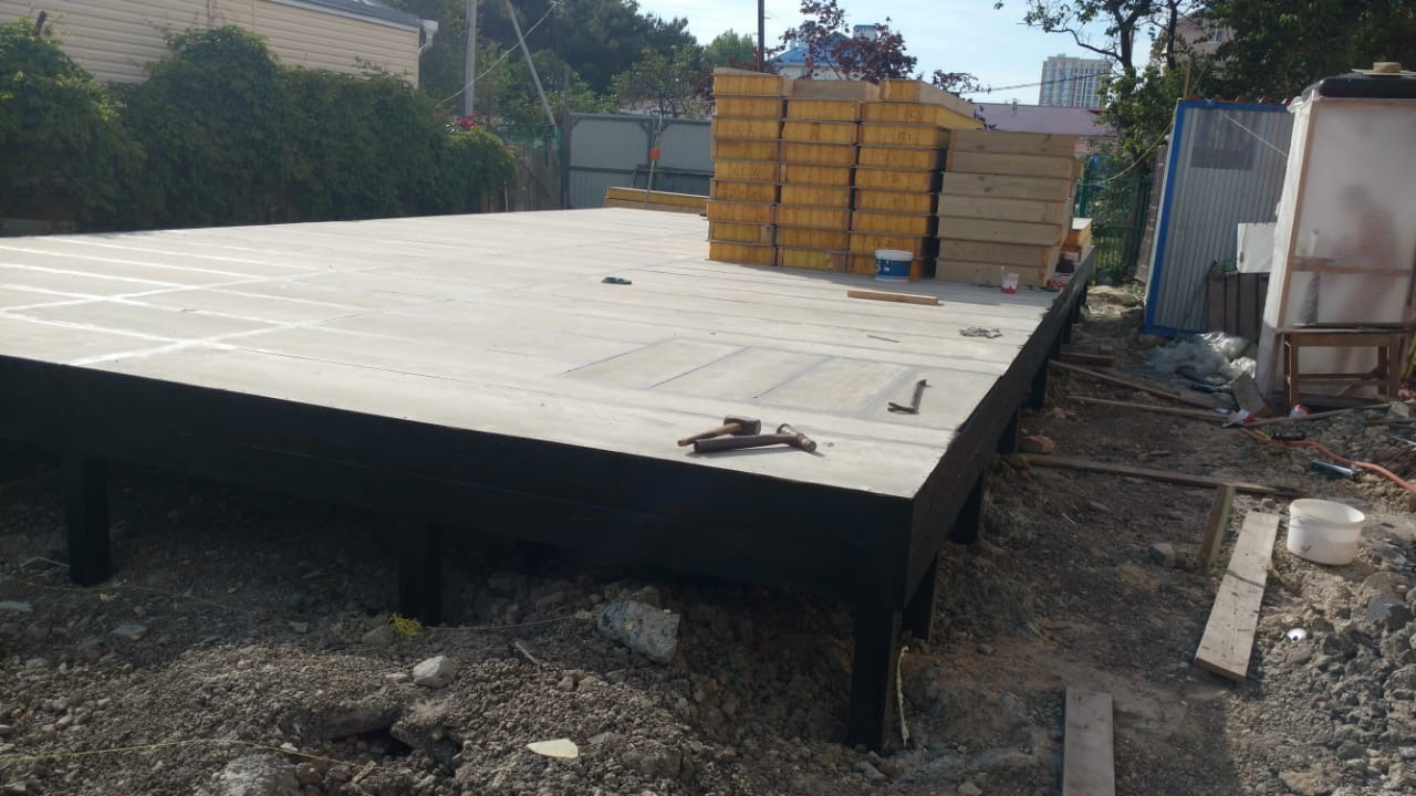 Ростверк изготовлен из калиброванного клееного бруса и защищен снаружи цементно-стружечной плитой