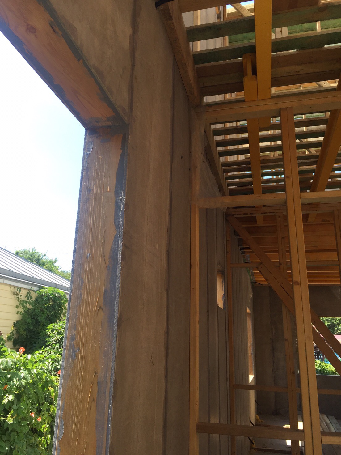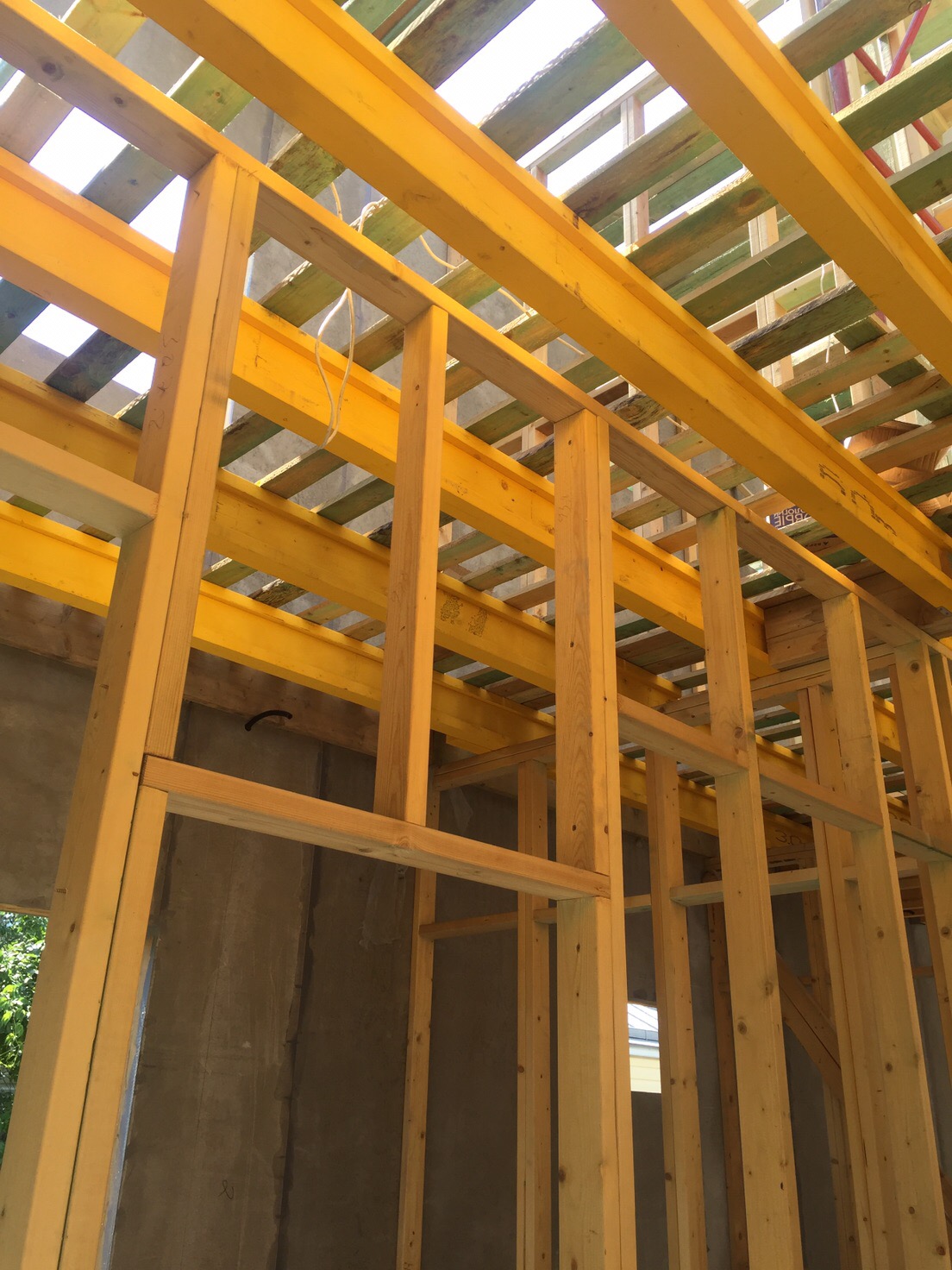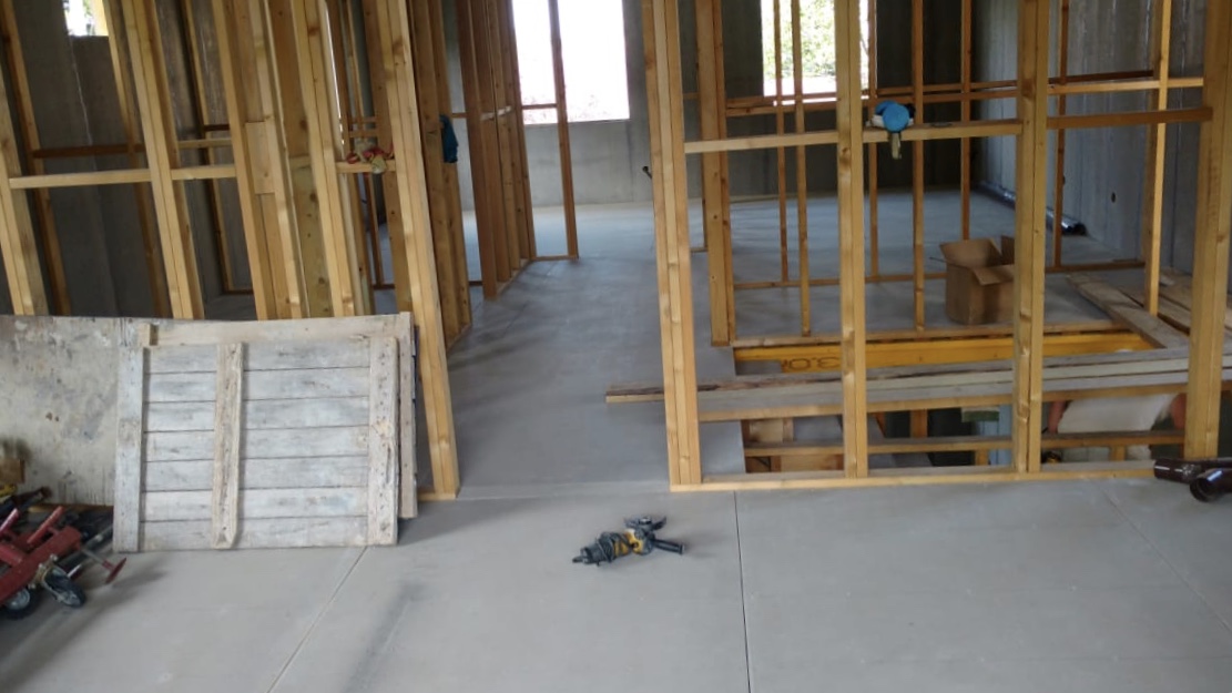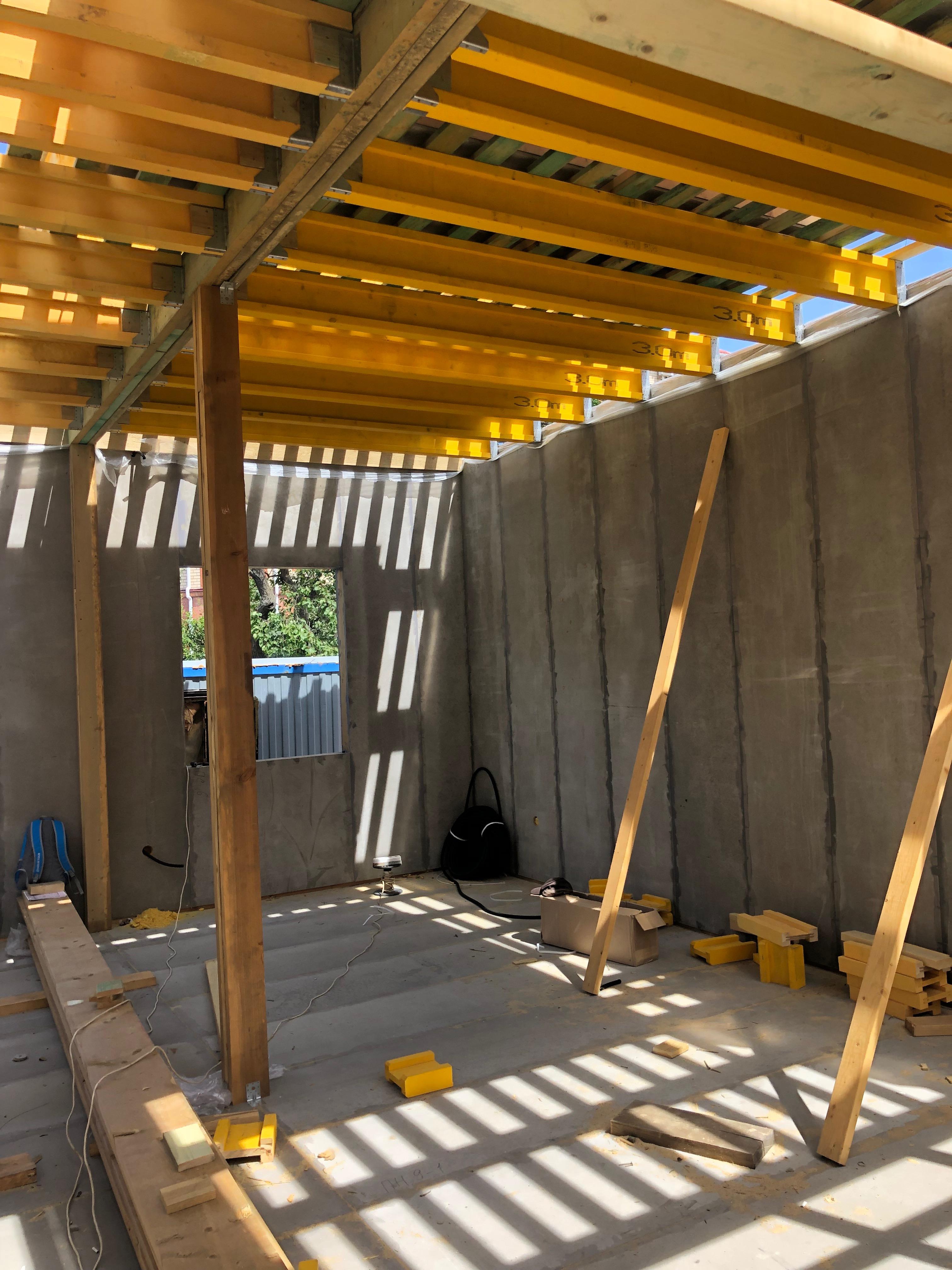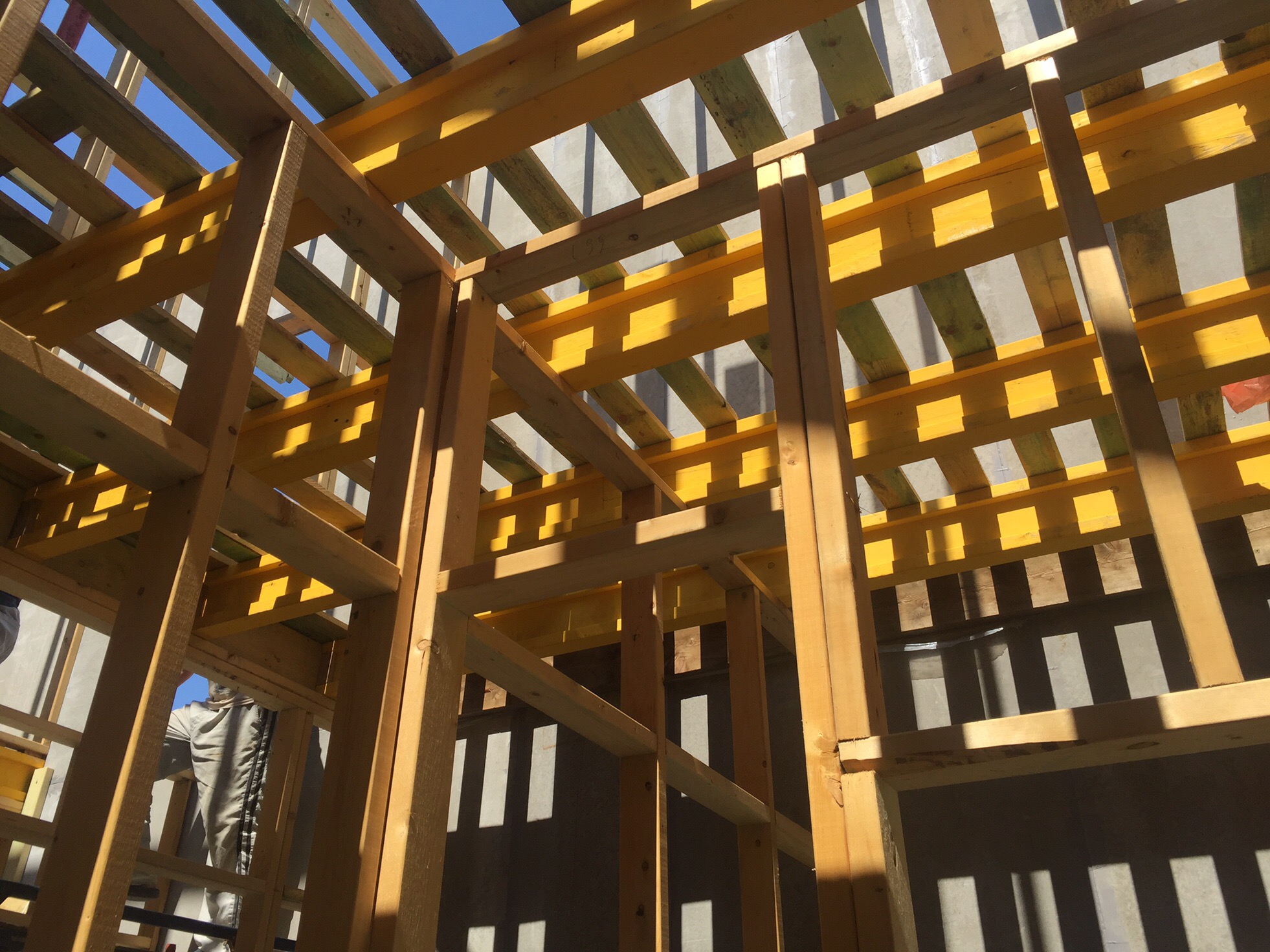 Ростверк изготовлен из калиброванного клееного бруса и защищен снаружи цементно-стружечной плитой