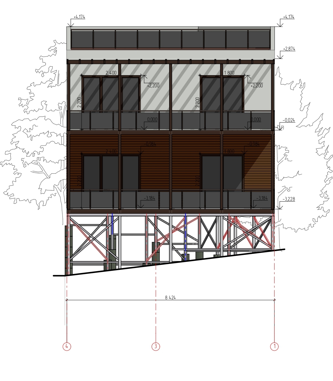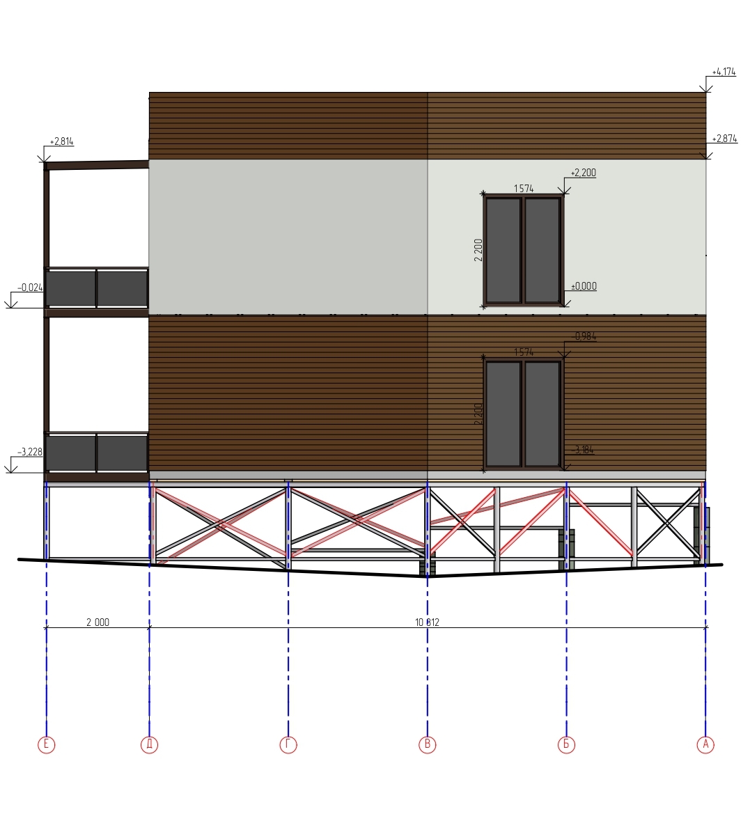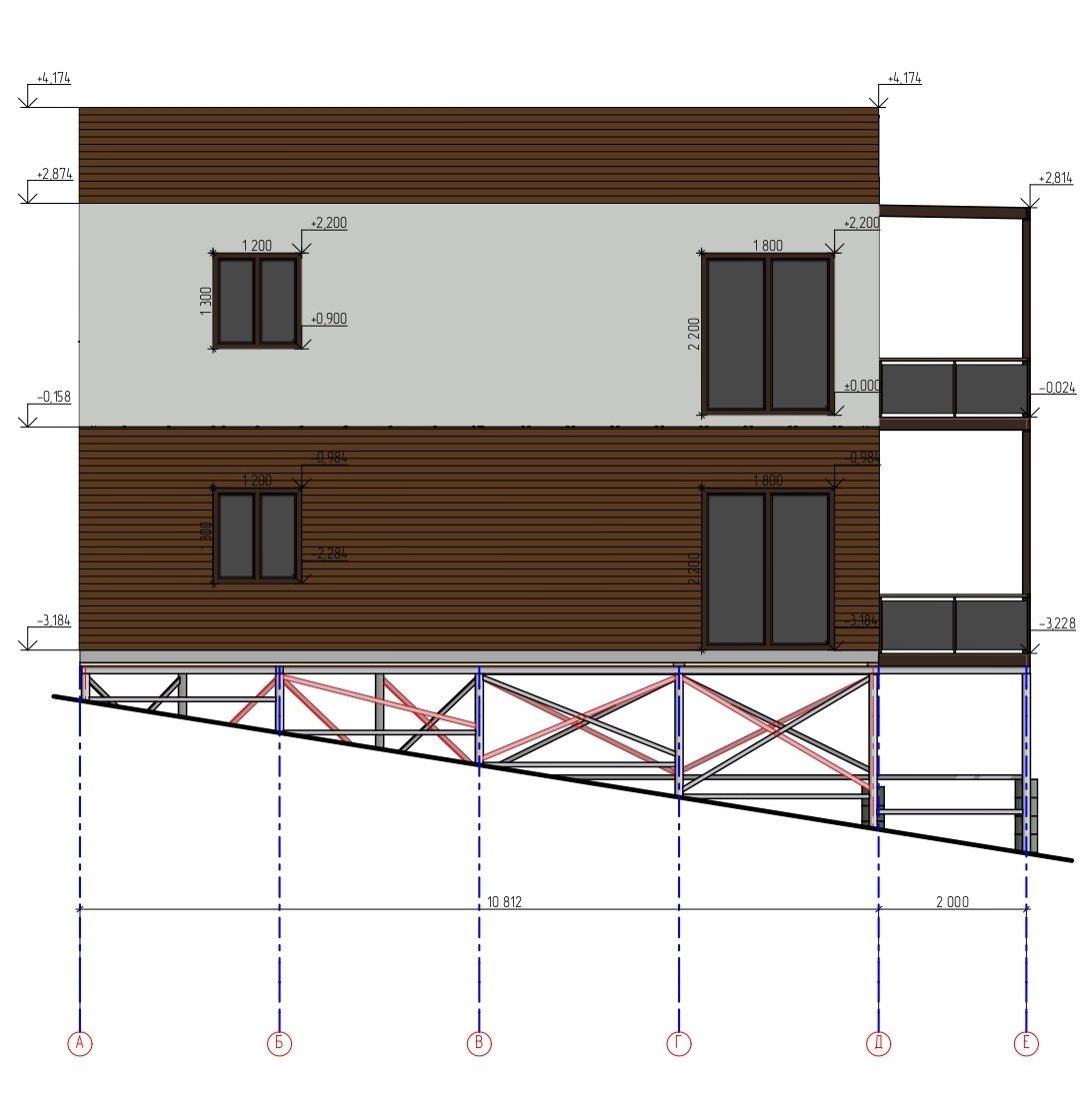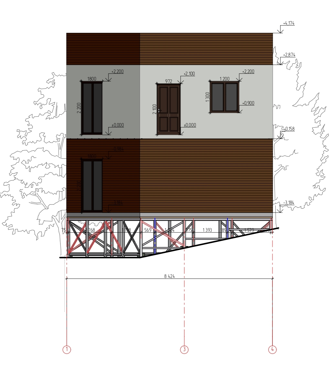 Ростверк изготовлен из калиброванного клееного бруса и защищен снаружи цементно-стружечной плитой