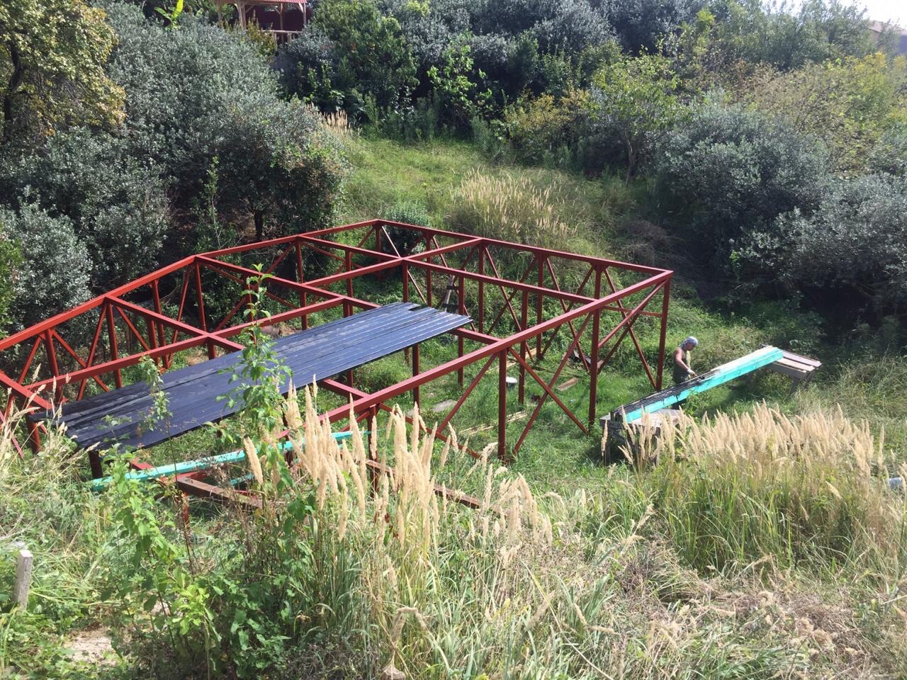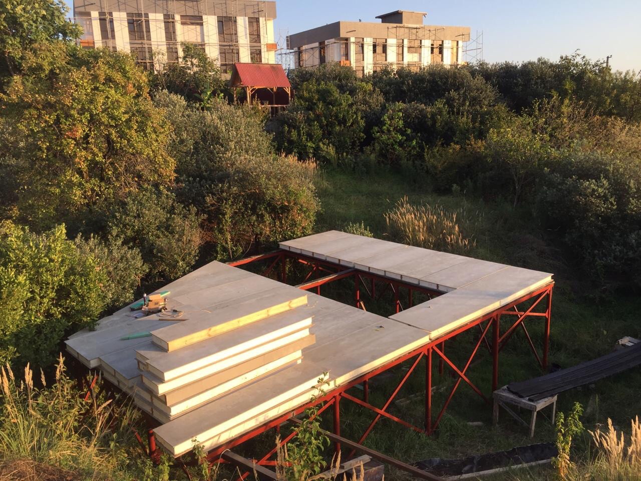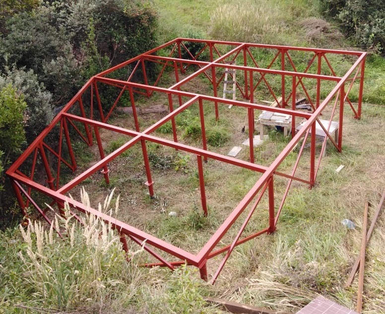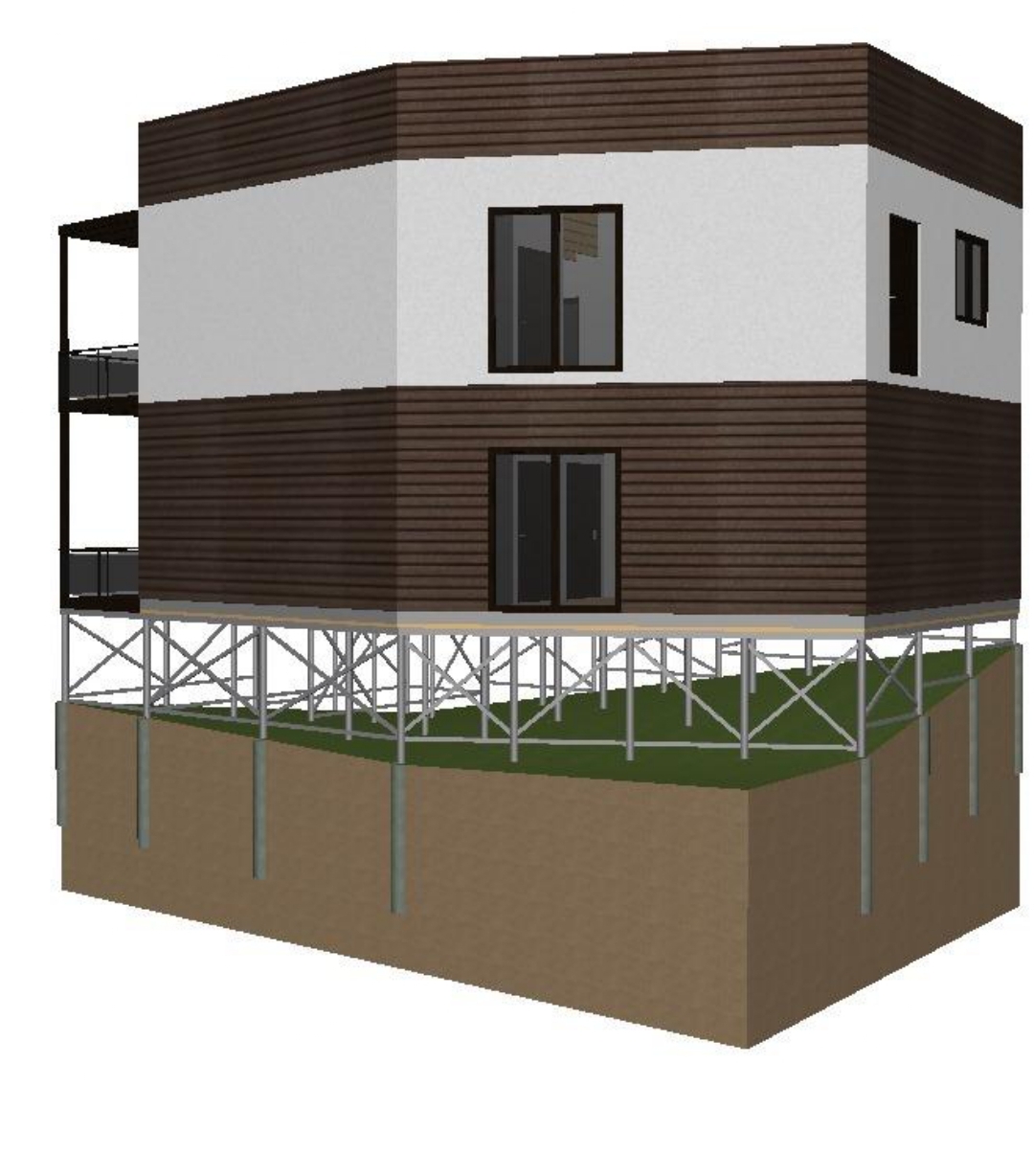 Ростверк изготовлен из калиброванного клееного бруса и защищен снаружи цементно-стружечной плитой