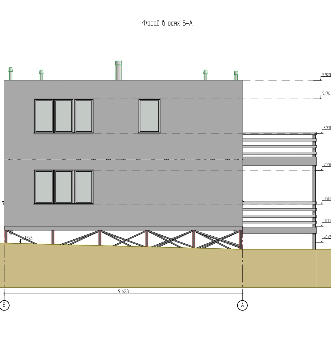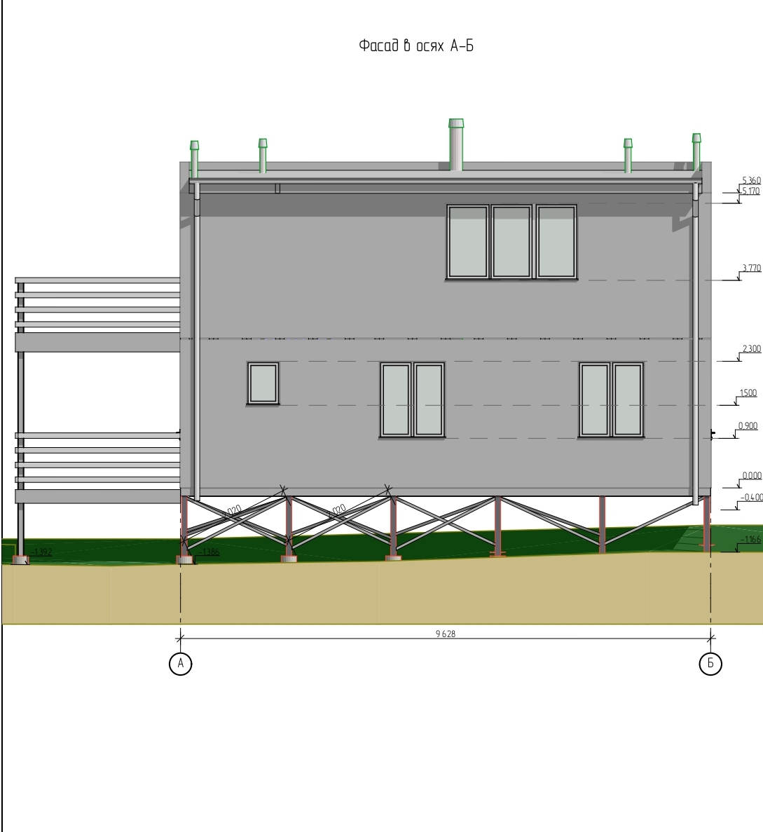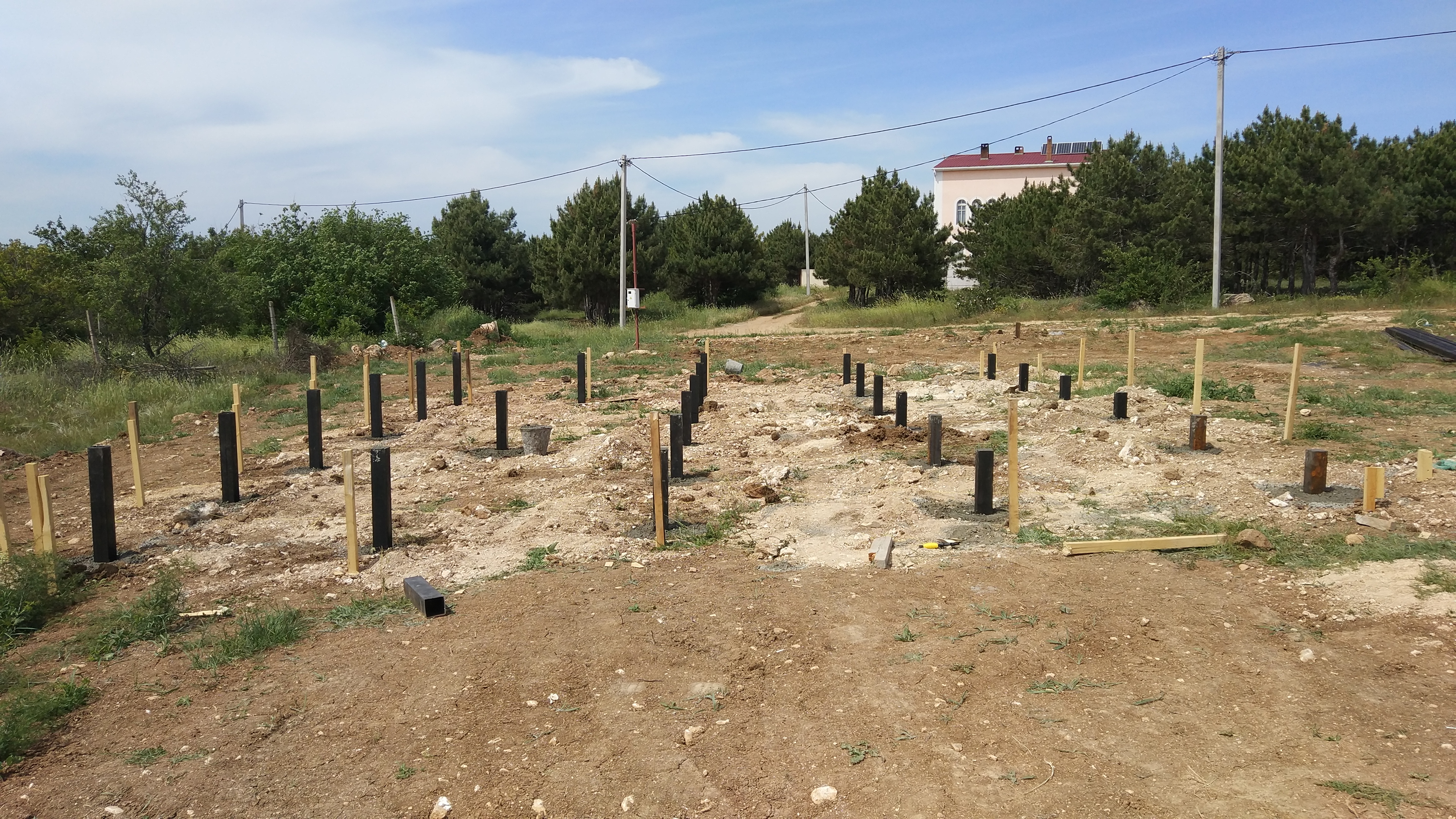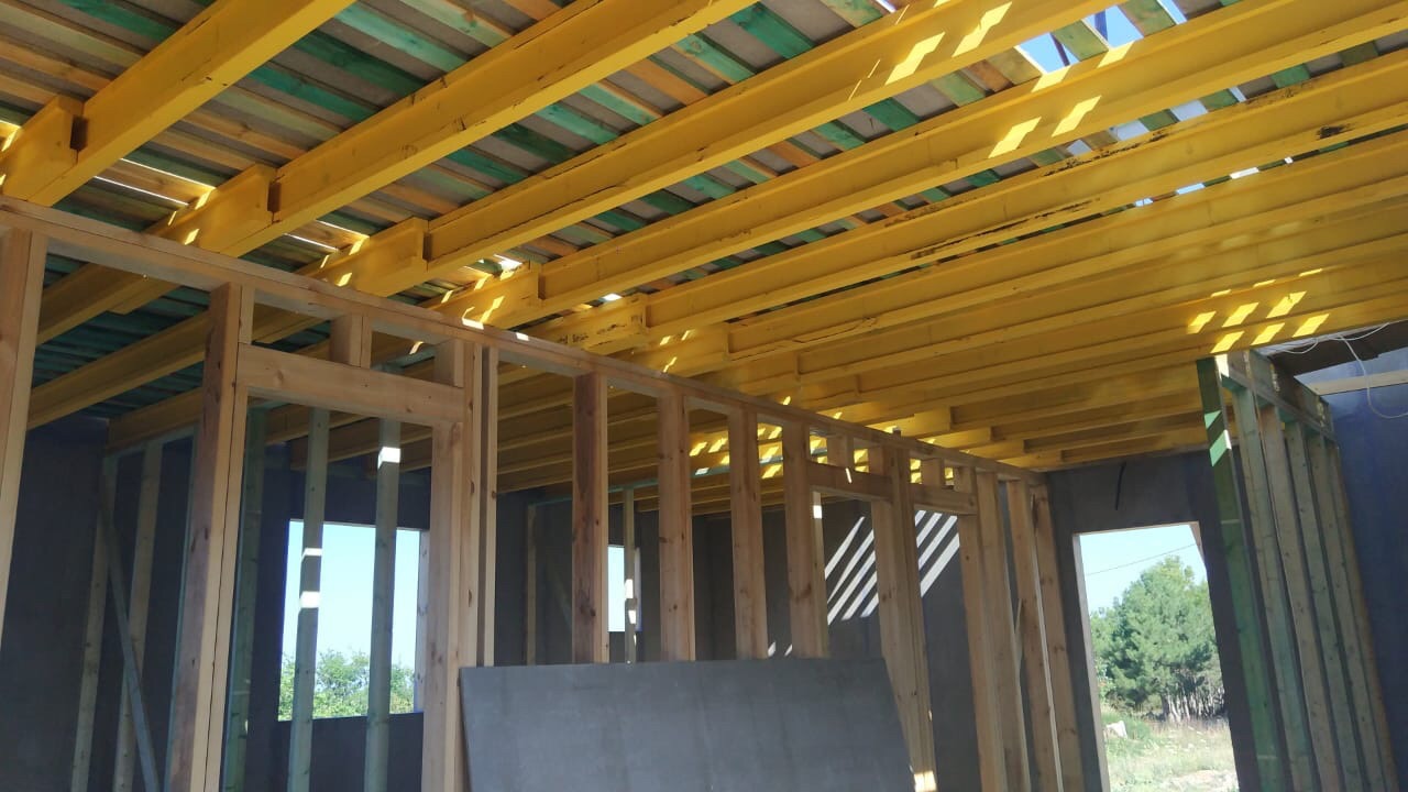 Ростверк изготовлен из калиброванного клееного бруса и защищен снаружи цементно-стружечной плитой