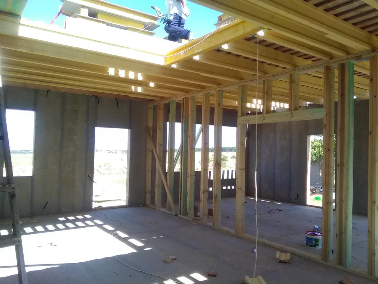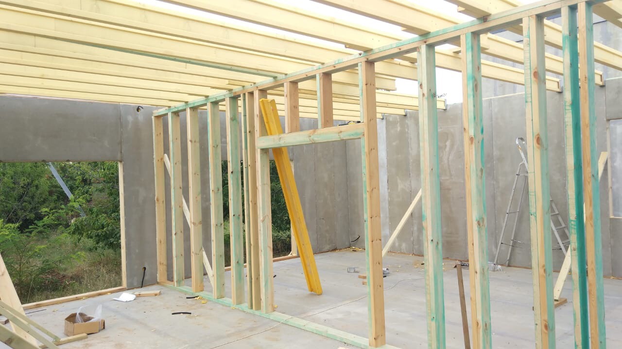 Ростверк изготовлен из калиброванного клееного бруса и защищен снаружи цементно-стружечной плитой