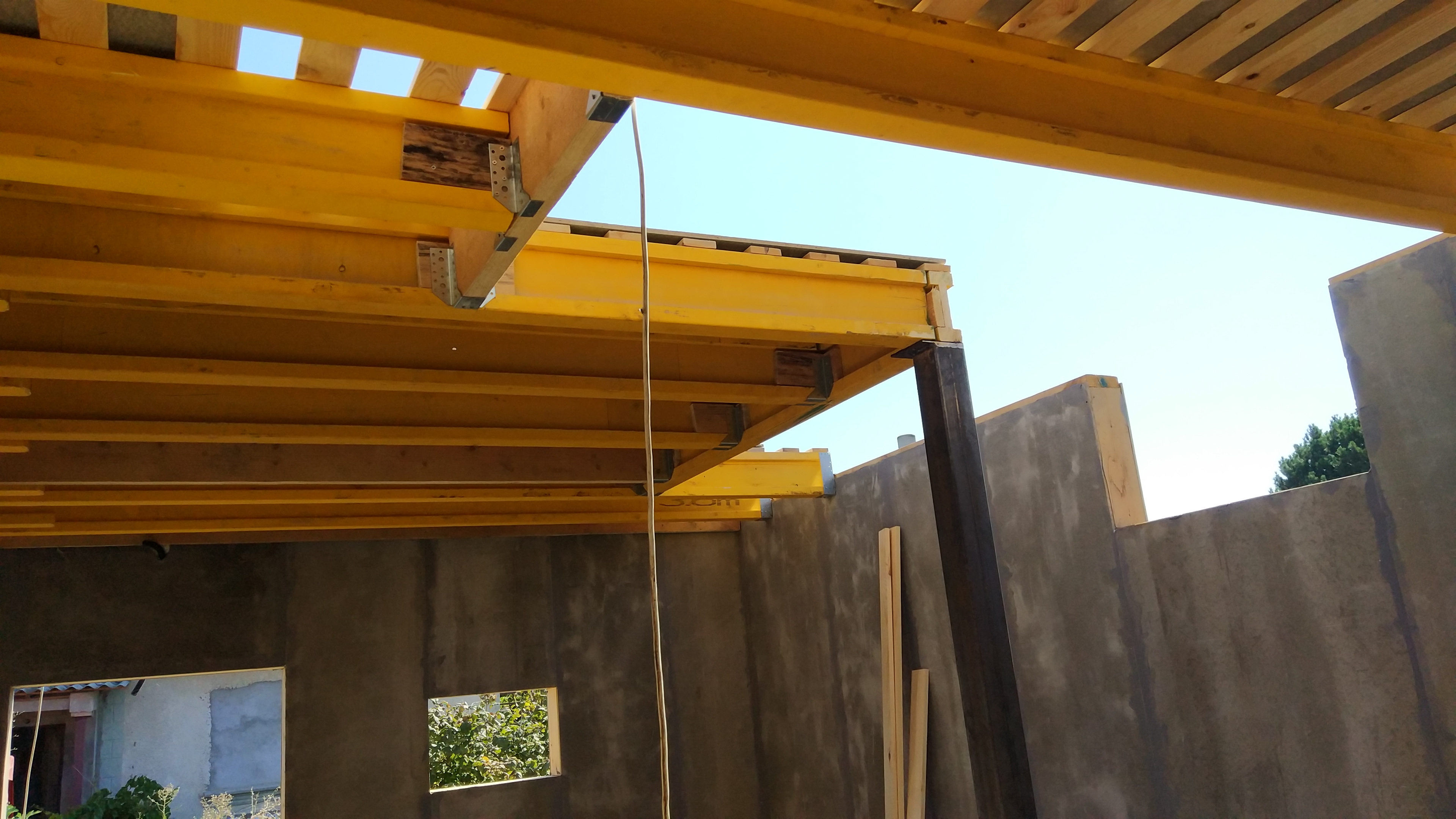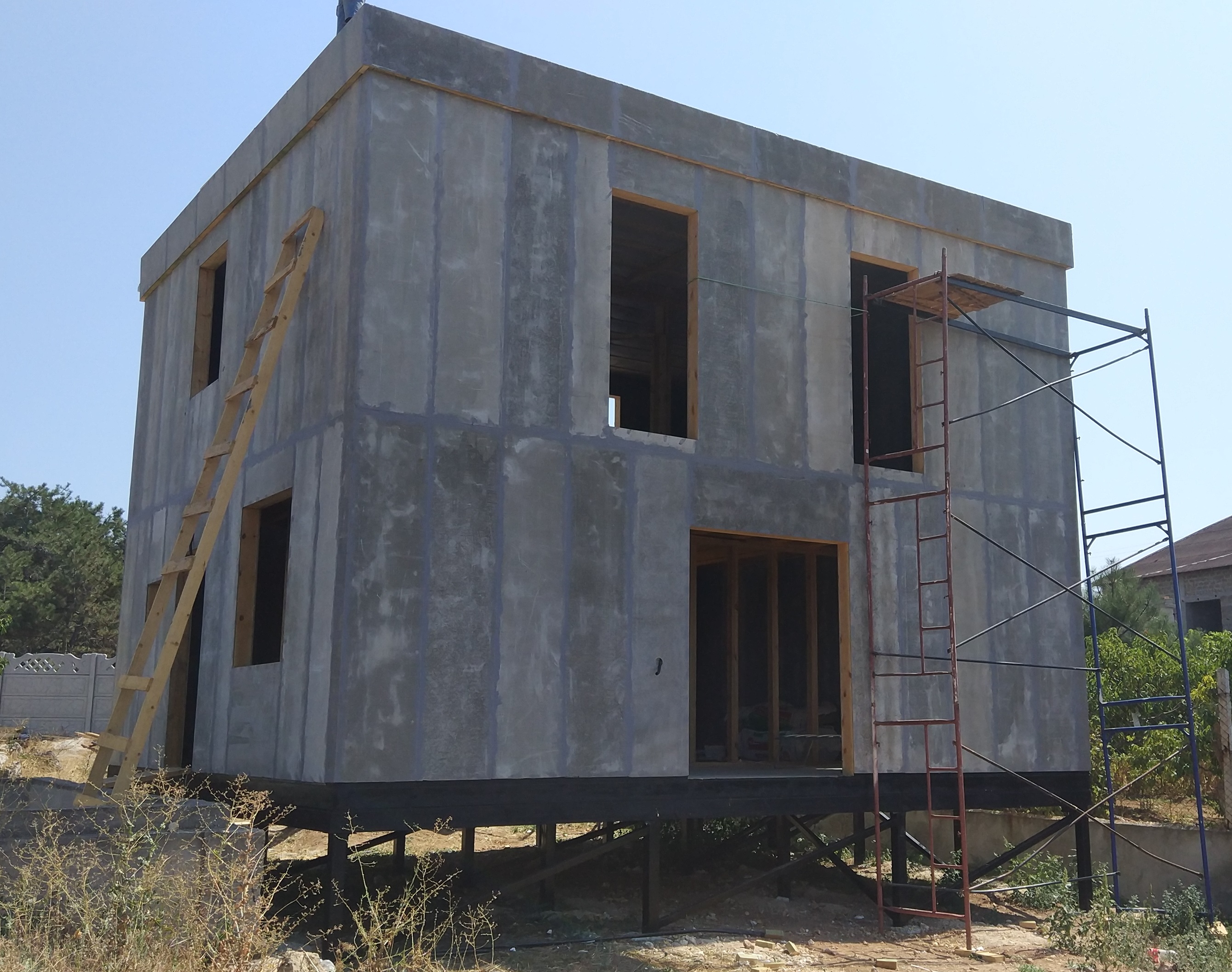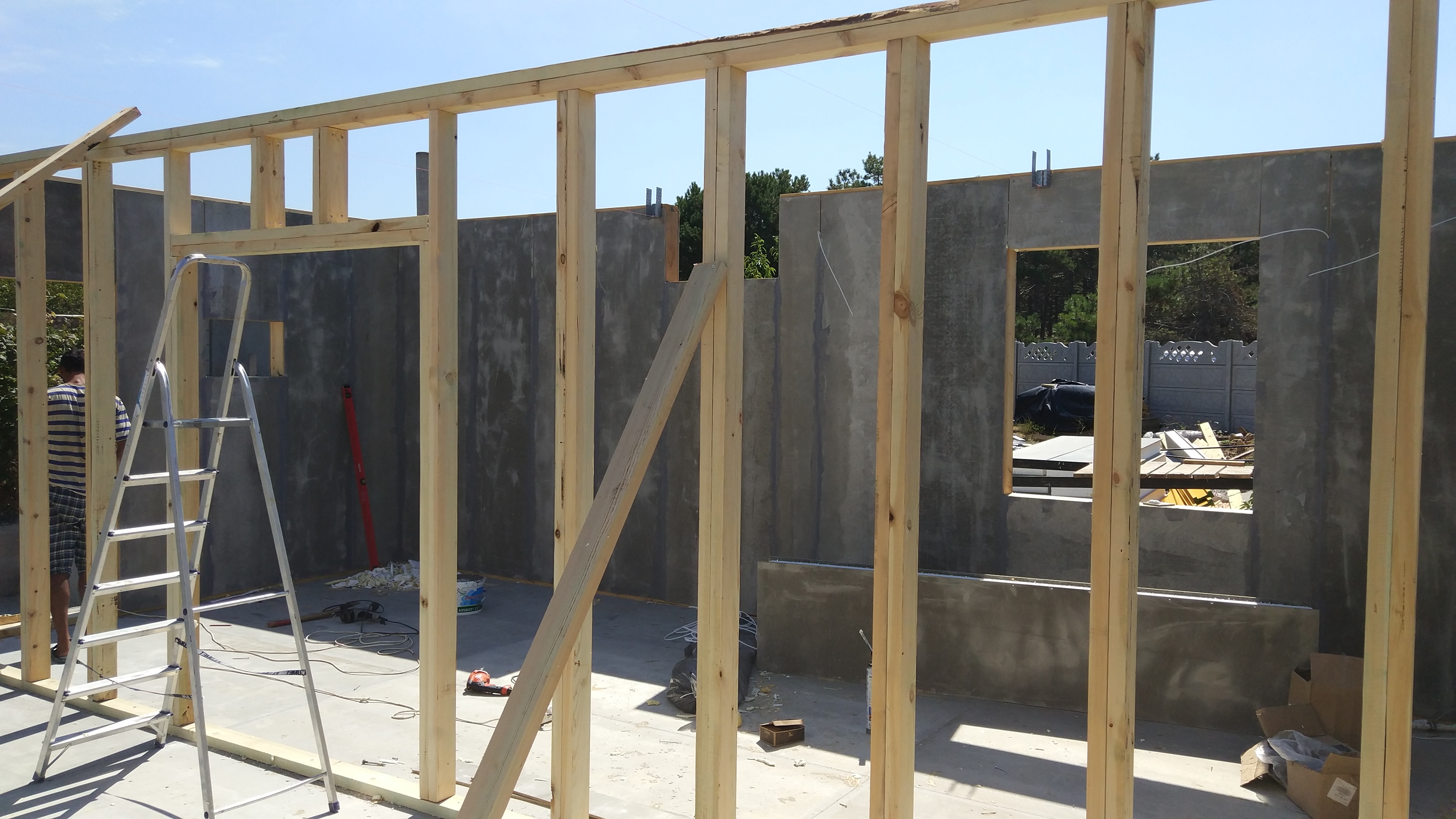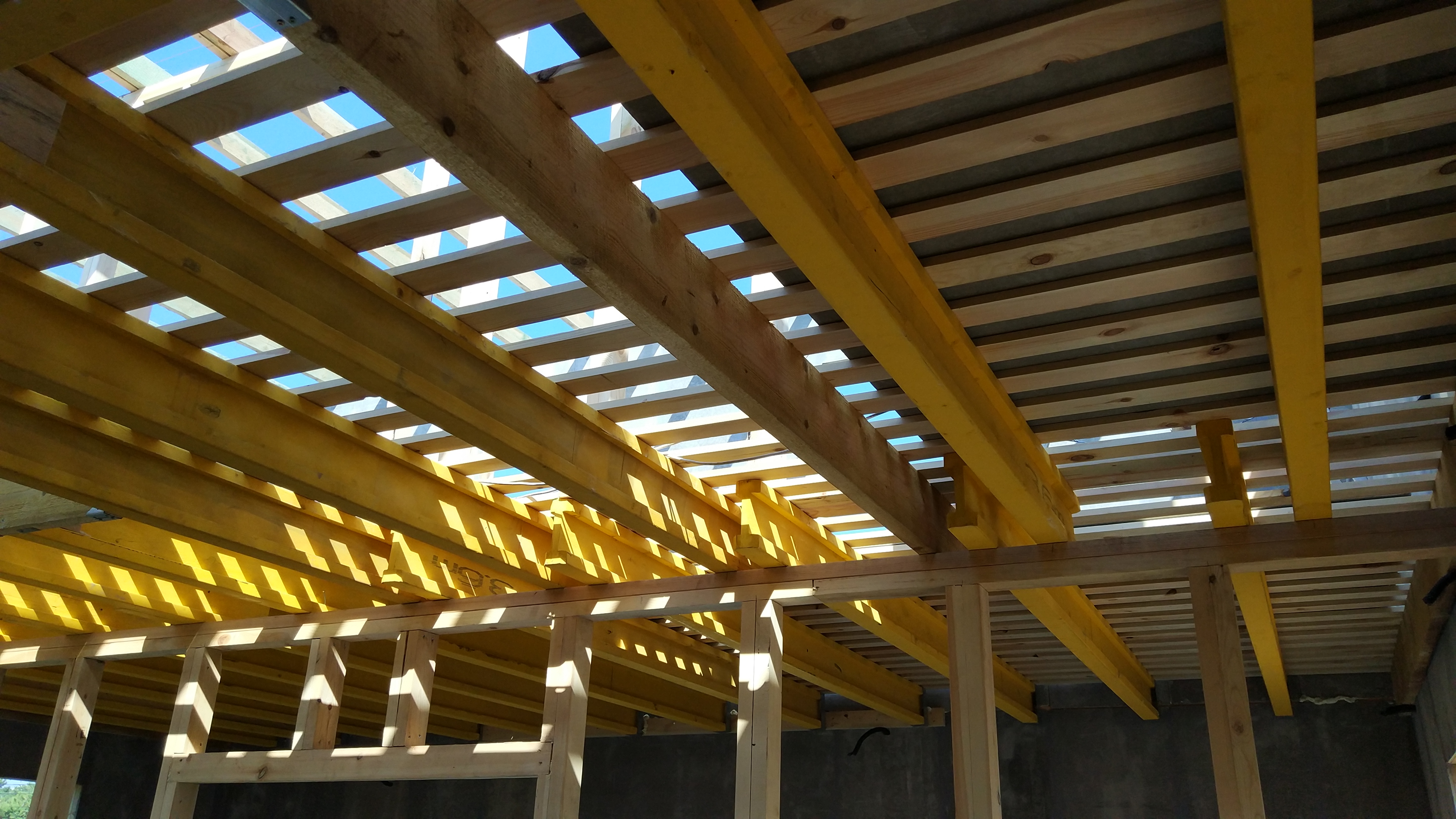 Ростверк изготовлен из калиброванного клееного бруса и защищен снаружи цементно-стружечной плитой