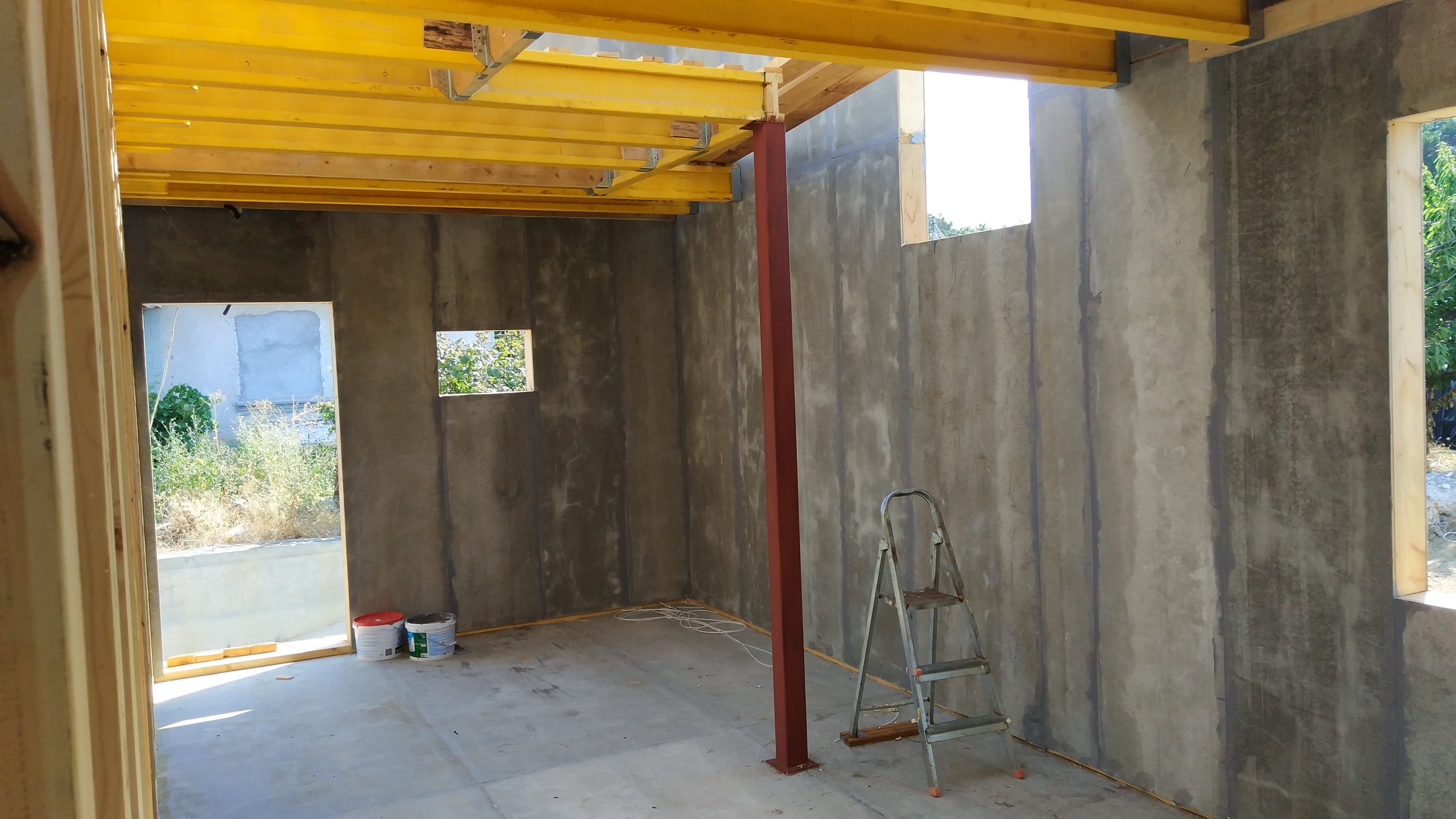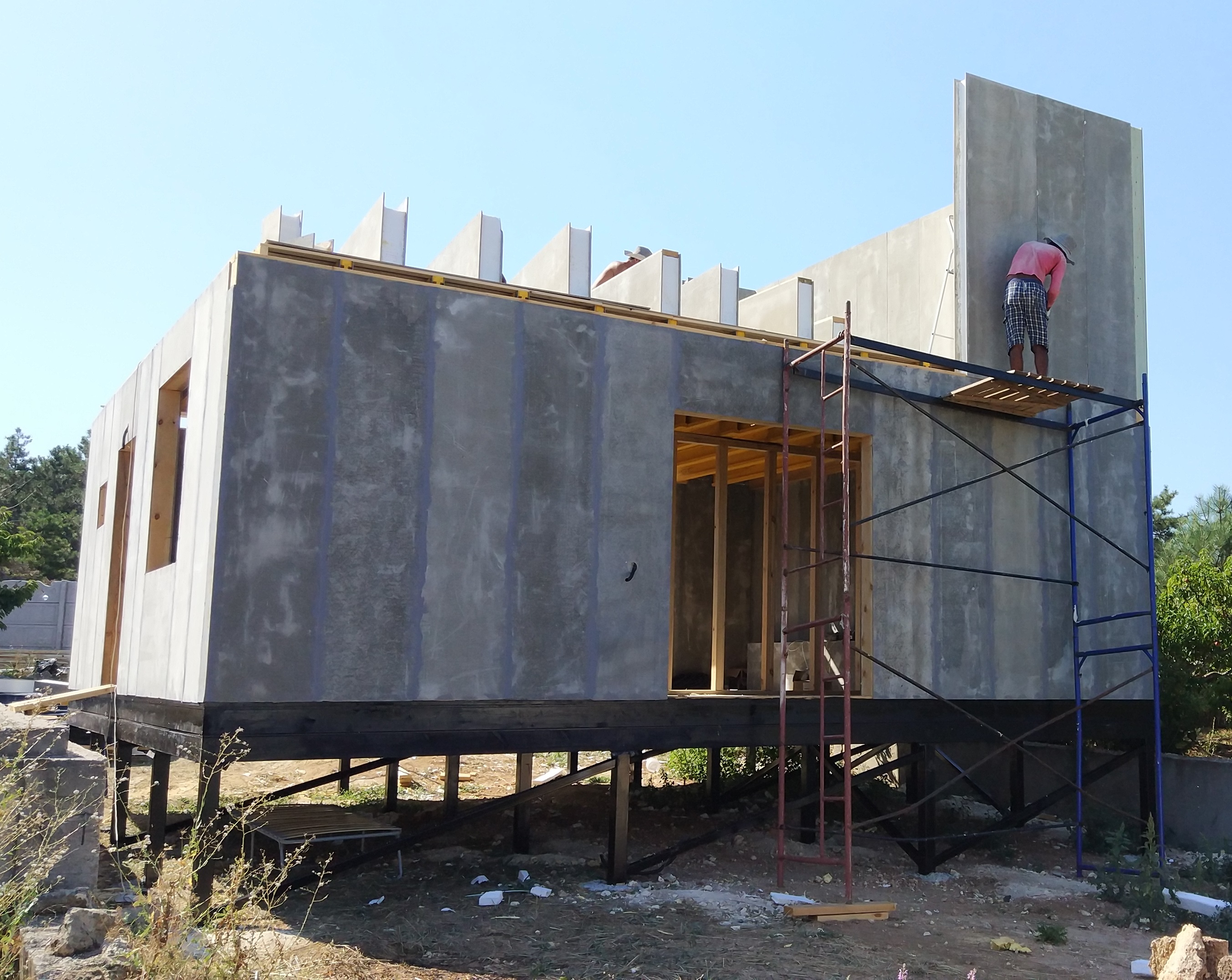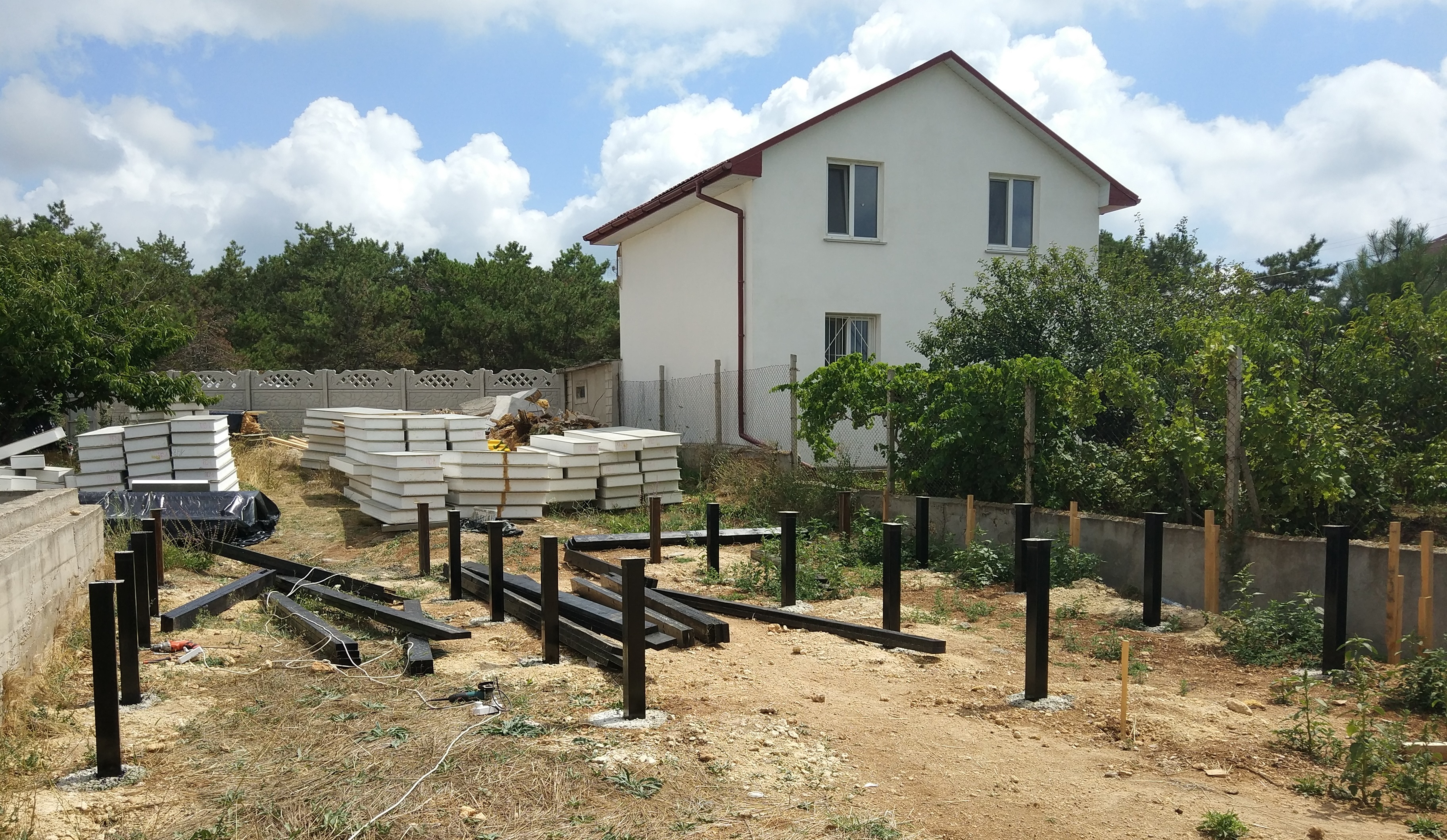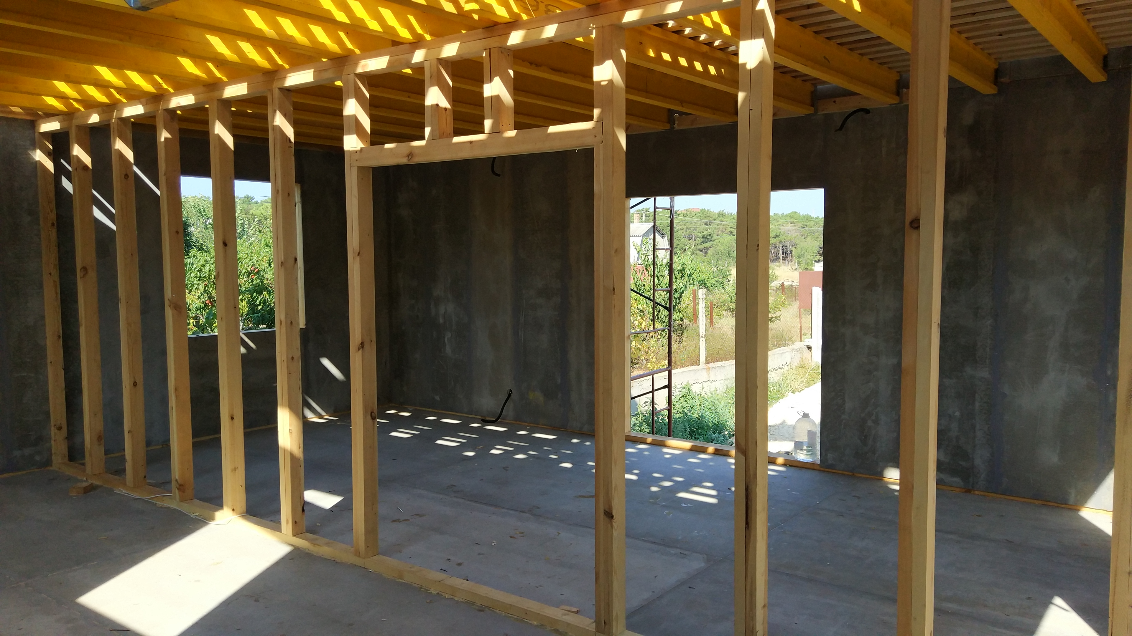 Ростверк изготовлен из калиброванного клееного бруса и защищен снаружи цементно-стружечной плитой