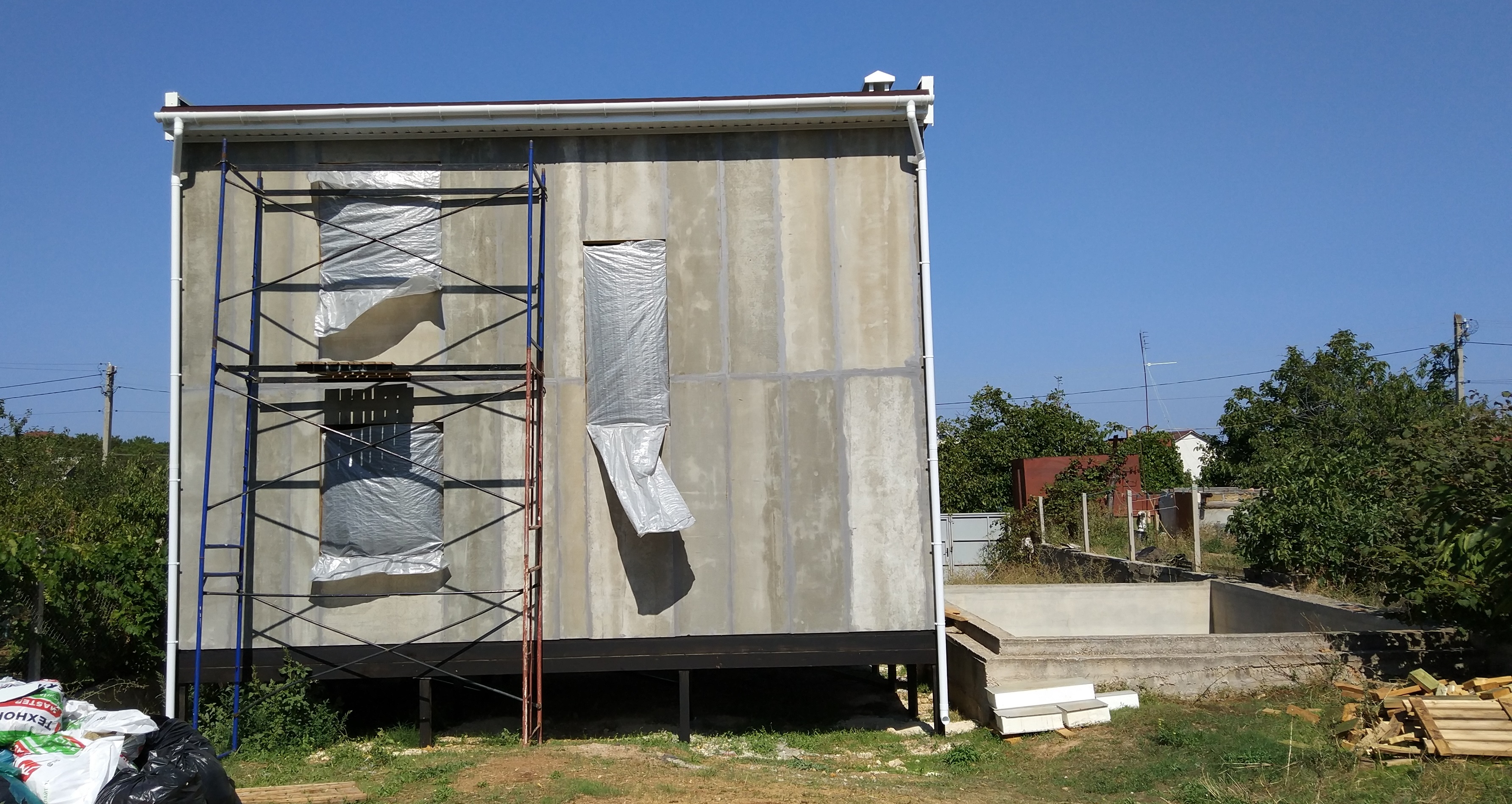 • внутренний теплоизоляционный слой с толщиной 148 мм двух типов: полистирол ПСБ-25 (плотностью 25 кг/м3) или минеральная вата ISOVER (плотностью 64 кг/м3).