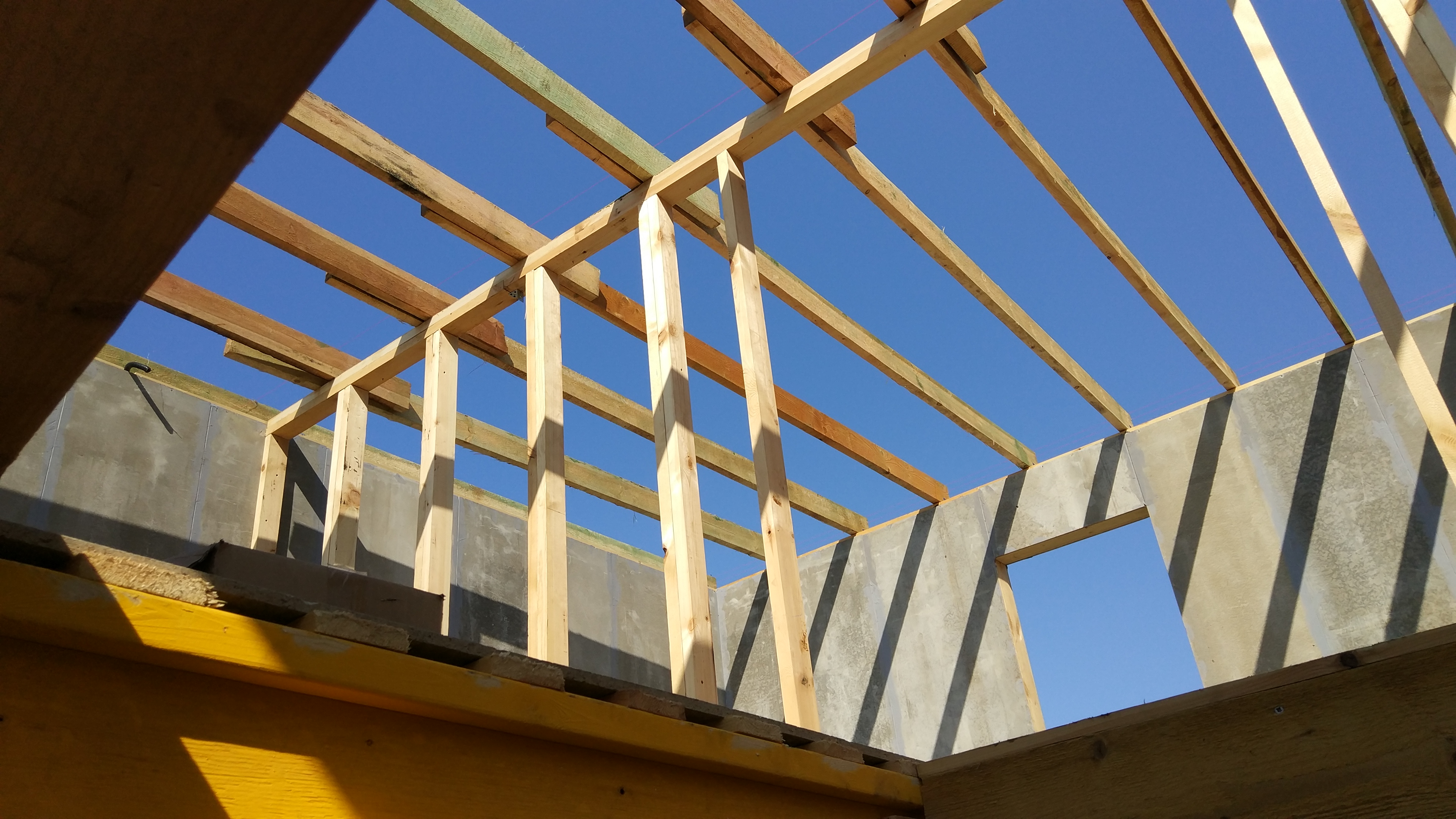 Кровля может быть построена из бруса 150х50мм или SIP панелей. В качестве кровельного материала можно использовать: металлочерепицу, битумную и керамическую черепицу. Также производим кровельные шовные сэндвич-панели.