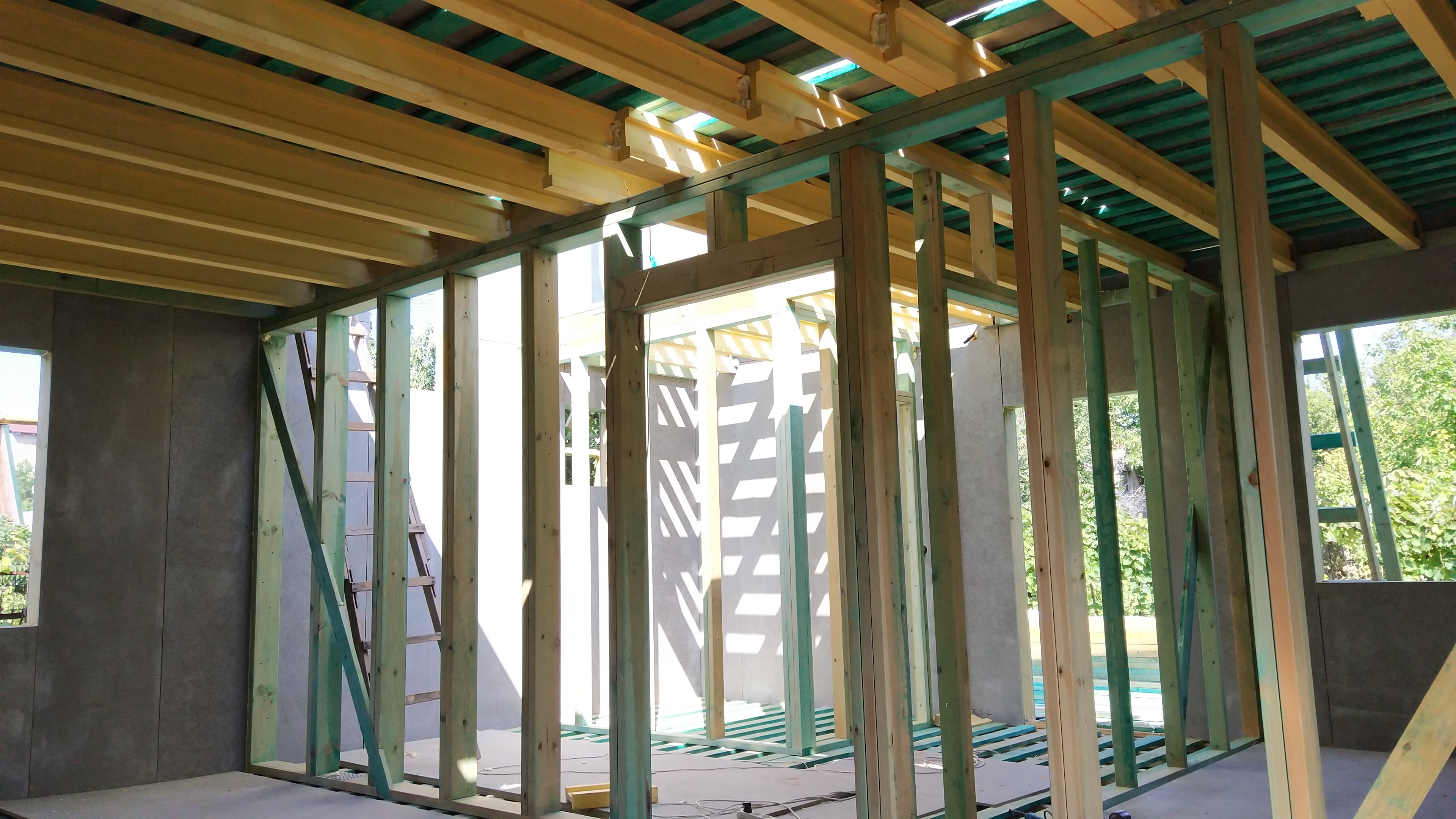 Ростверк изготовлен из калиброванного клееного бруса и защищен снаружи цементно-стружечной плитой