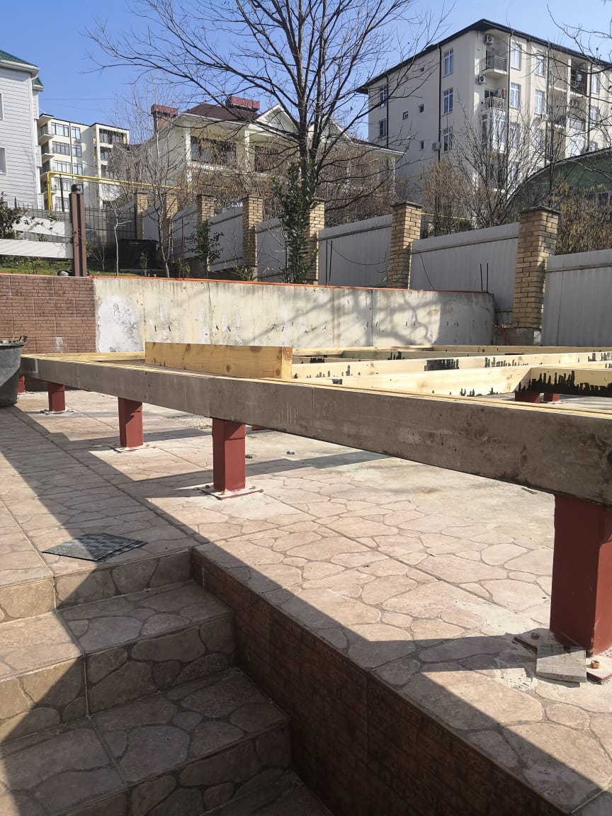 Ростверк изготовлен из калиброванного клееного бруса и защищен снаружи цементно-стружечной плитой