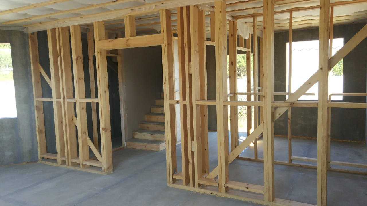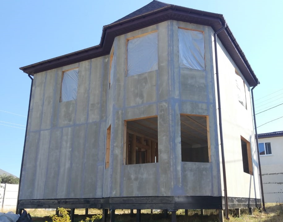 Ростверк изготовлен из калиброванного клееного бруса и защищен снаружи цементно-стружечной плитой
