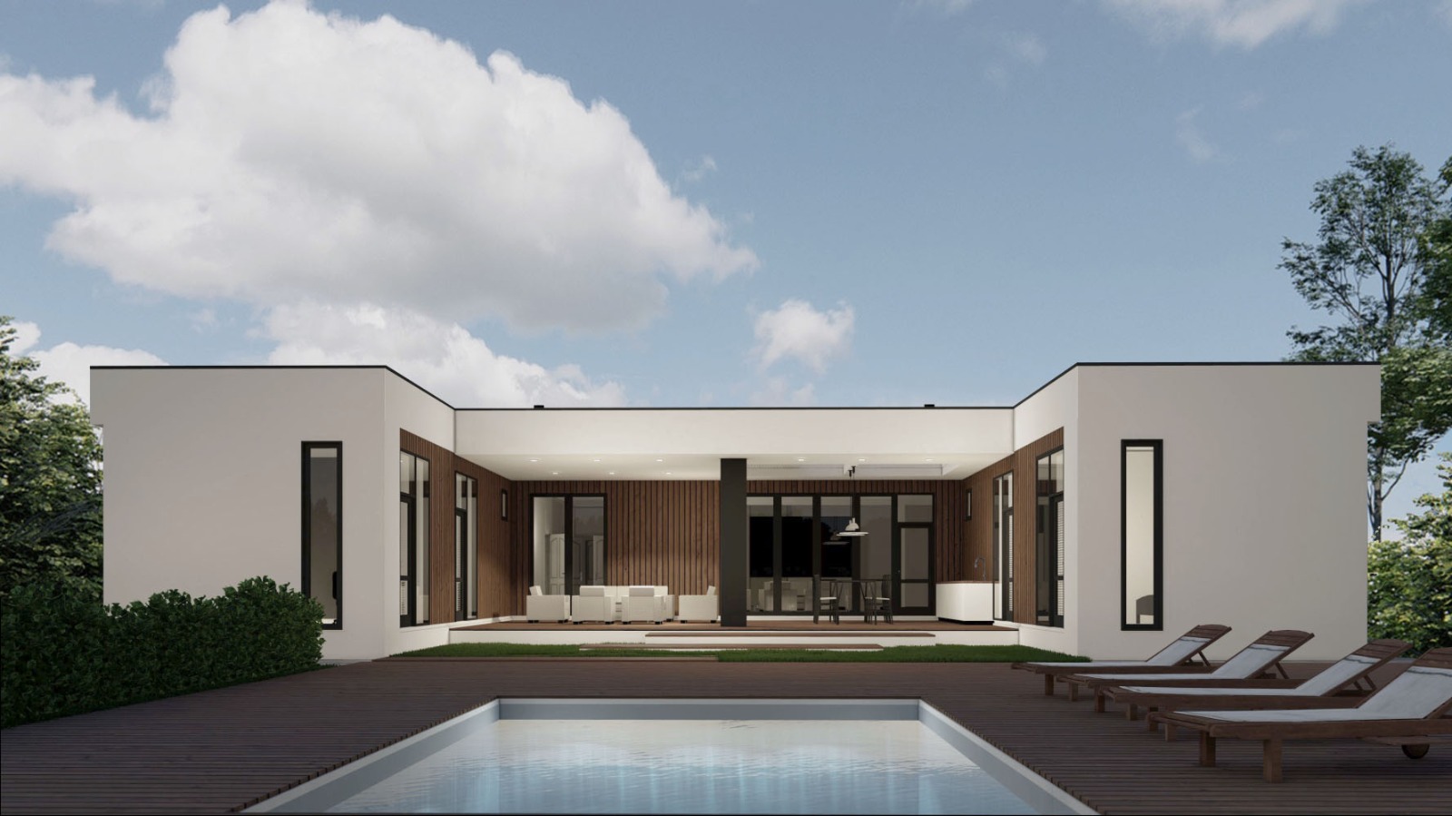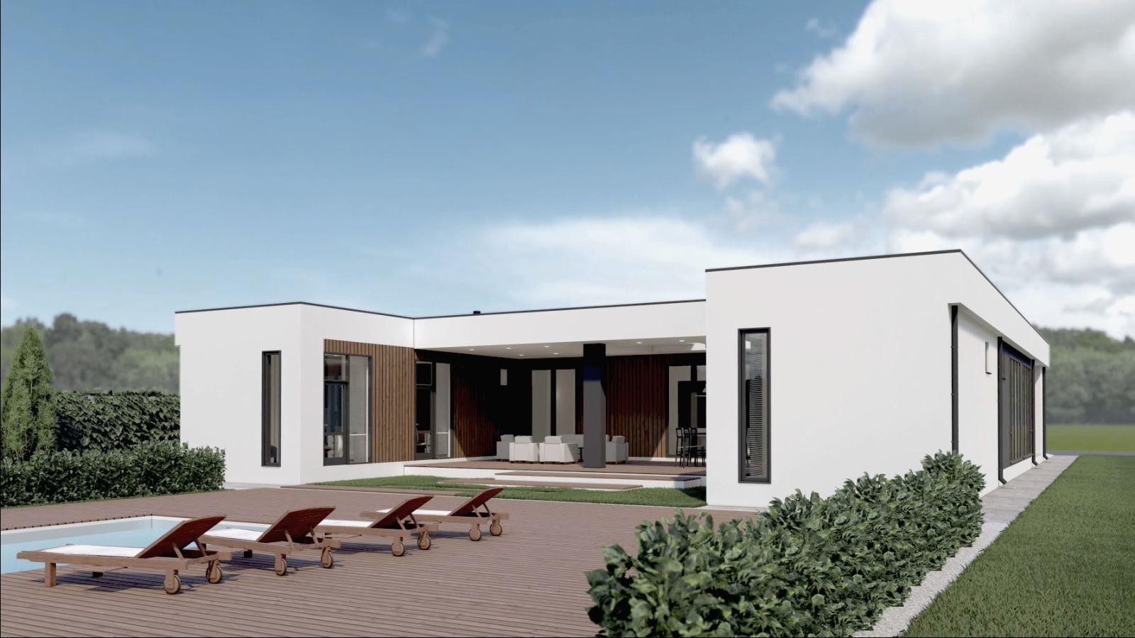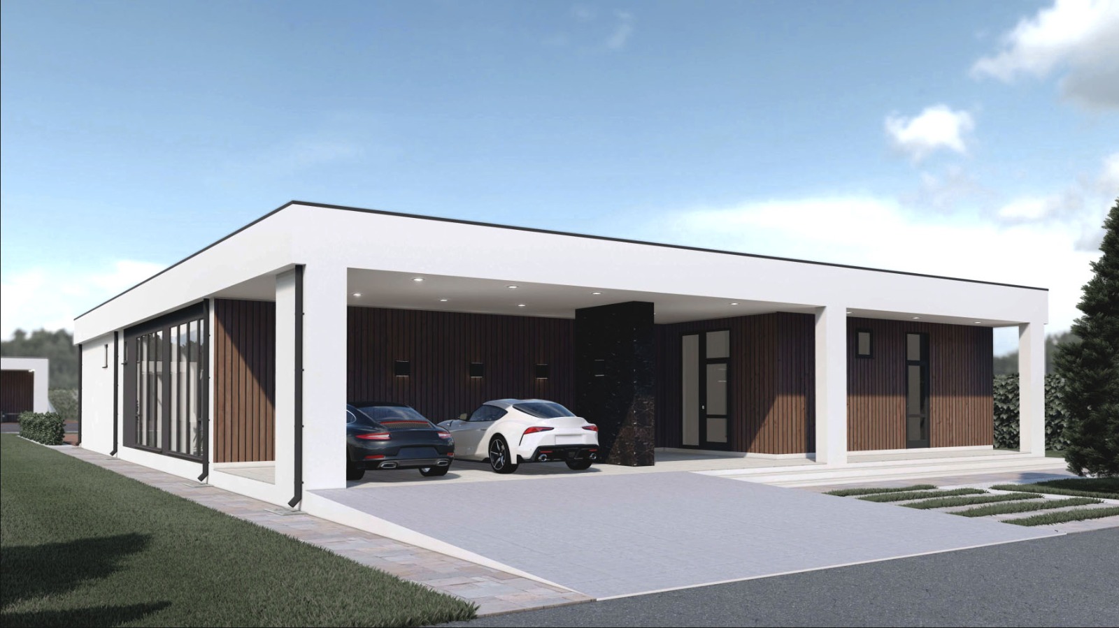 • Плоская или скатная утепленная кровля (пароизоляционная пленка, утеплитель вата на основе стекловолокна или базальта, гидро-ветрозащитная мембрана) с покрытием из металлочерепицы, полимерной мембраны или гибкой черепицы. (цена отличается от выбранного типа) (Ширина карнизного свеса от 30 см. Водосточная система в стоимость не входит