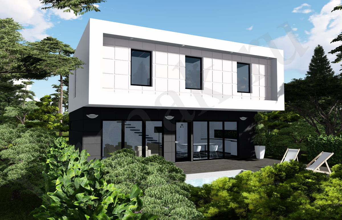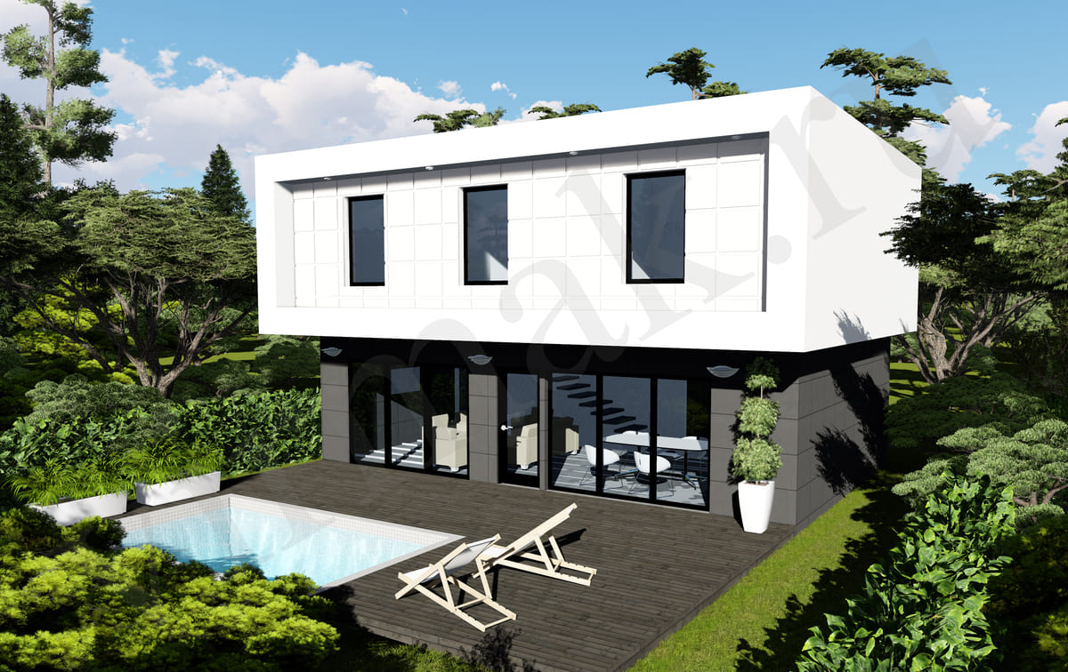 • Плоская или скатная утепленная кровля (пароизоляционная пленка, утеплитель вата на основе стекловолокна или базальта, гидро-ветрозащитная мембрана) с покрытием из металлочерепицы, полимерной мембраны или гибкой черепицы. (цена отличается от выбранного типа) (Ширина карнизного свеса от 30 см. Водосточная система в стоимость не входит