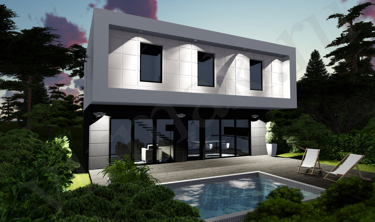 • Внешние стены — трехслойная СИП панель с ЦСП (h=от 2700 мм) толщиной 172 мм, утеплитель 148/198 мм на выбор: Пенополистирол или Изовер Сэндвич Лайф. Несущий каркас стен сухая калиброванная доска 46х145/195 мм. Сборка в стоимость не входит
