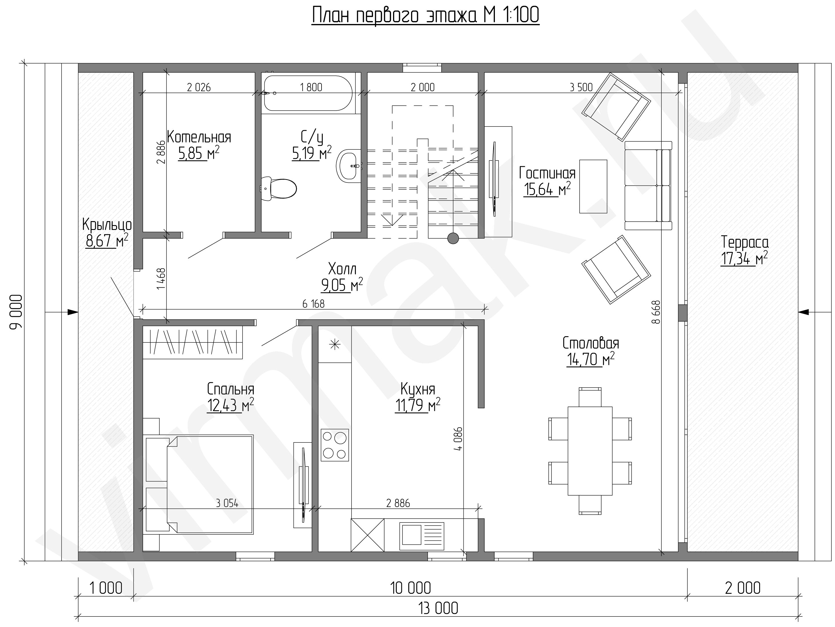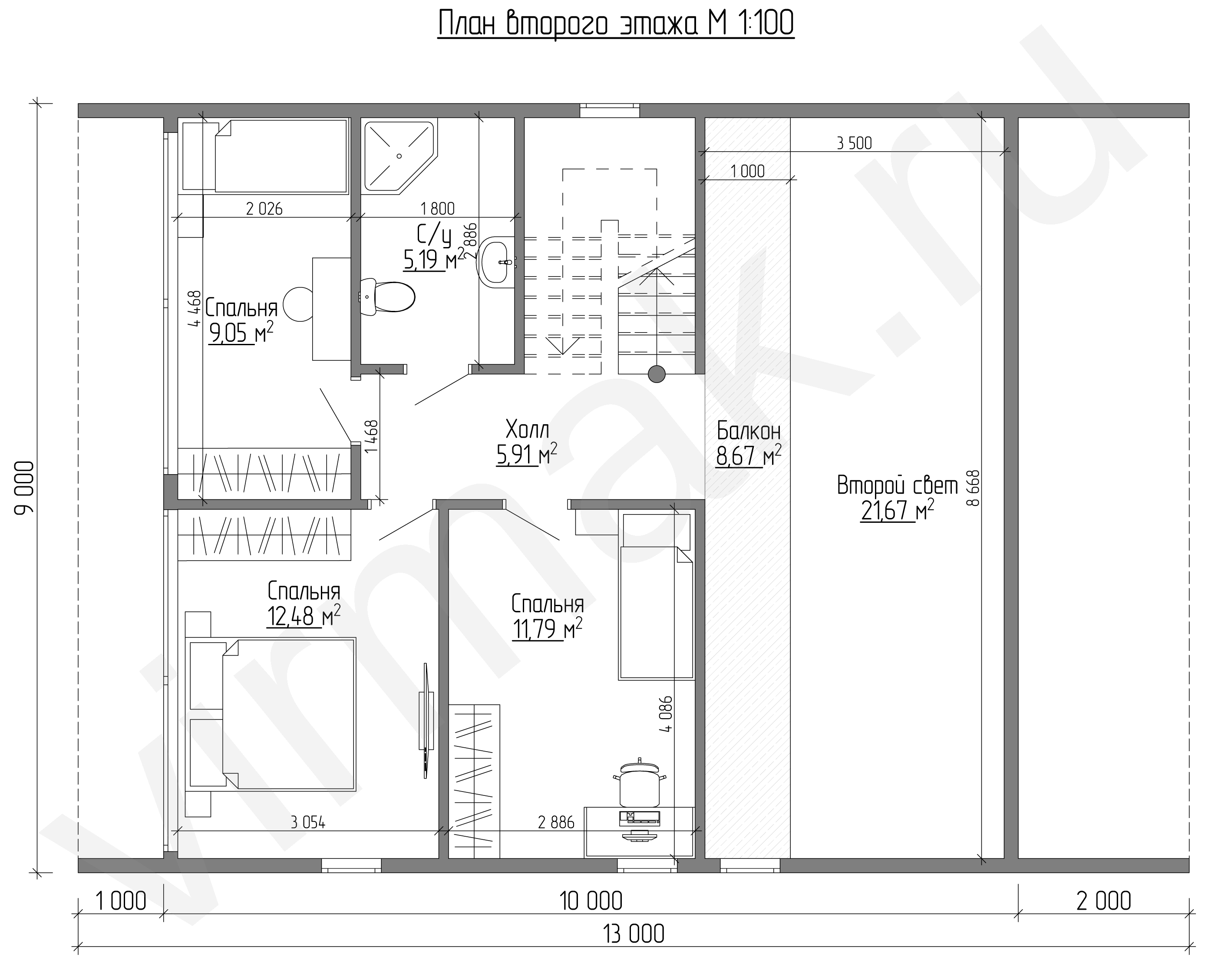 • Внутренние перегородки-каркас из сухой строганной доски: несущие 46х145 мм. Сборка в стоимость не входит