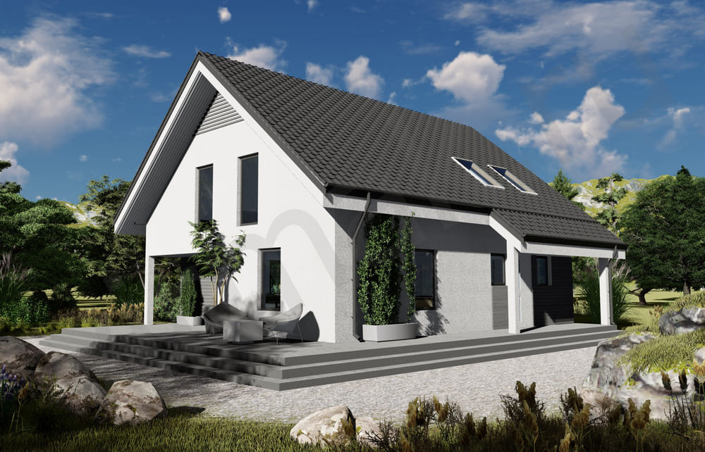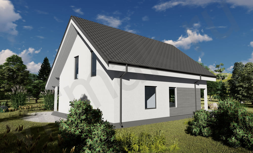 • Плоская или скатная утепленная кровля (пароизоляционная пленка, утеплитель вата на основе стекловолокна или базальта, гидро-ветрозащитная мембрана) с покрытием из металлочерепицы, полимерной мембраны или гибкой черепицы. (цена отличается от выбранного типа) (Ширина карнизного свеса от 30 см. Водосточная система в стоимость не входит