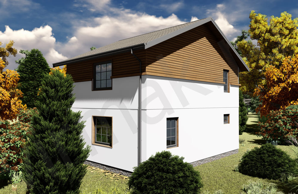 • Плоская или скатная утепленная кровля (пароизоляционная пленка, утеплитель вата на основе стекловолокна или базальта, гидро-ветрозащитная мембрана) с покрытием из металлочерепицы, полимерной мембраны или гибкой черепицы. (цена отличается от выбранного типа) (Ширина карнизного свеса от 30 см. Водосточная система в стоимость не входит