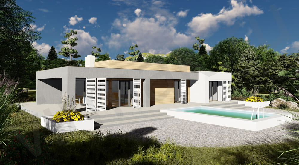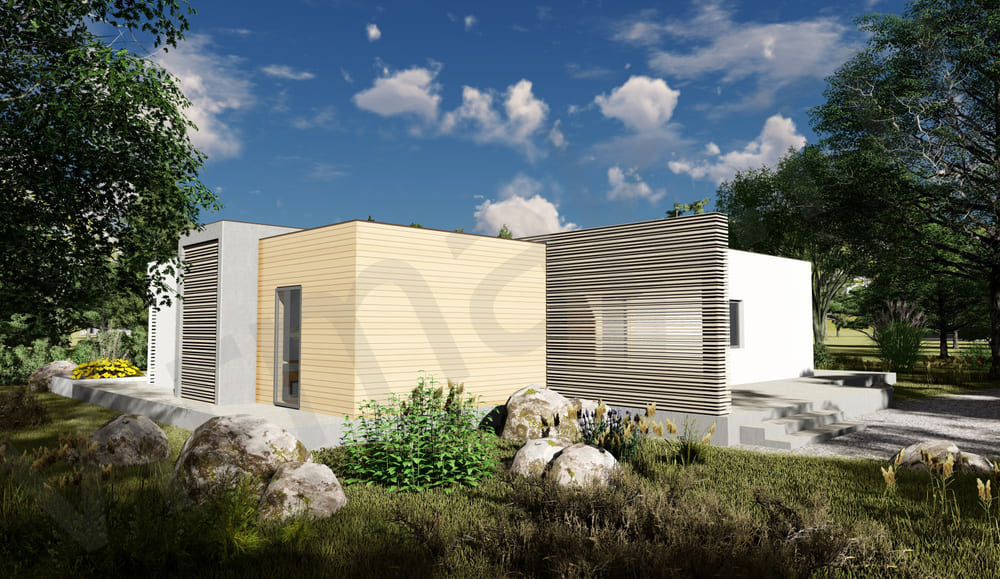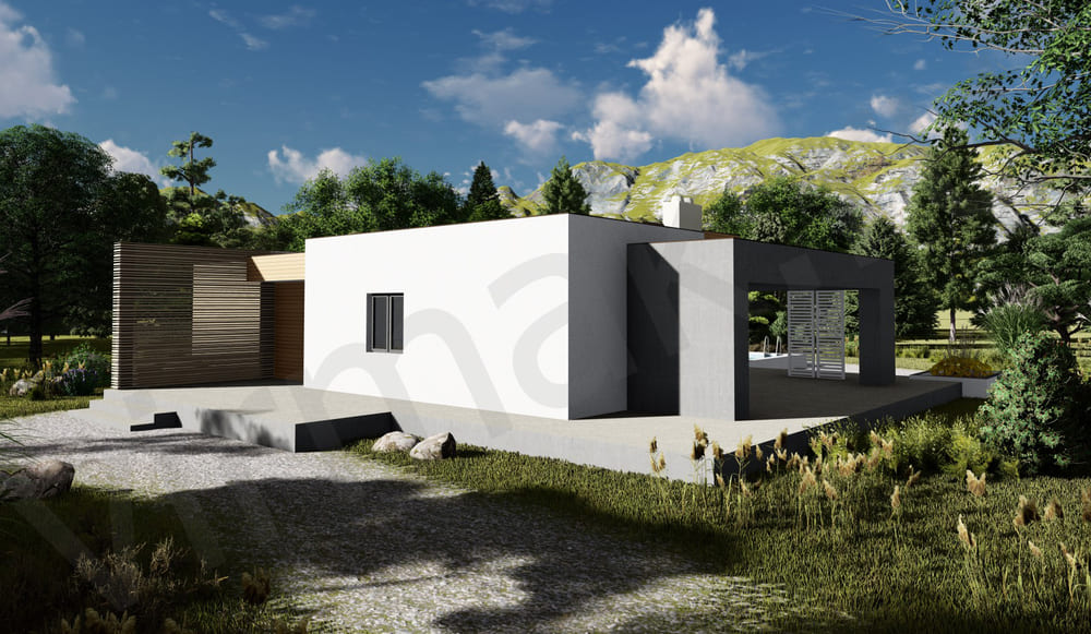 • Плоская или скатная утепленная кровля (пароизоляционная пленка, утеплитель вата на основе стекловолокна или базальта, гидро-ветрозащитная мембрана) с покрытием из металлочерепицы, полимерной мембраны или гибкой черепицы. (цена отличается от выбранного типа) (Ширина карнизного свеса от 30 см. Водосточная система в стоимость не входит