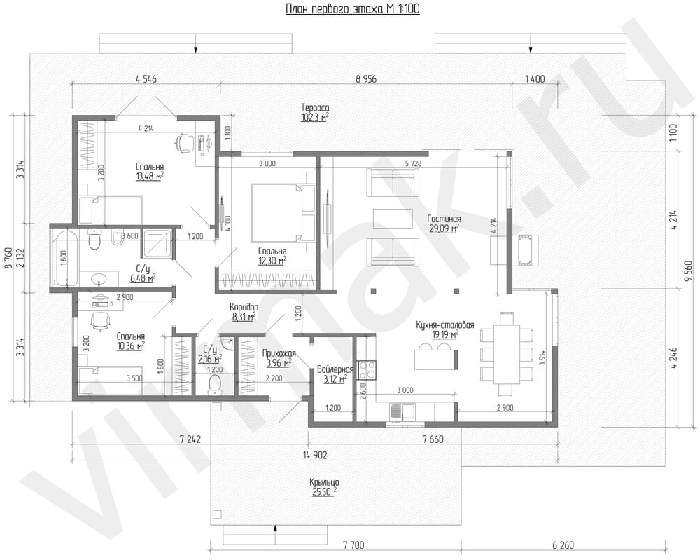 Площадь террасы, м² 1 шт. 102.3