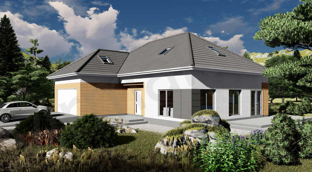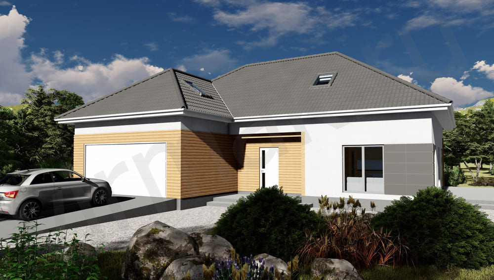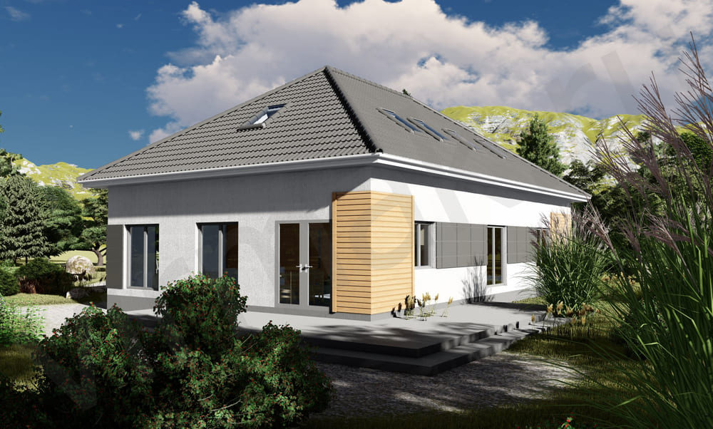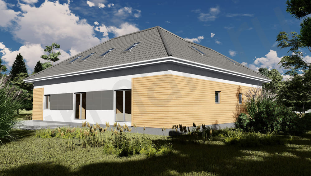 • Плоская или скатная утепленная кровля (пароизоляционная пленка, утеплитель вата на основе стекловолокна или базальта, гидро-ветрозащитная мембрана) с покрытием из металлочерепицы, полимерной мембраны или гибкой черепицы. (цена отличается от выбранного типа) (Ширина карнизного свеса от 30 см. Водосточная система в стоимость не входит